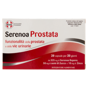 Serenoa Prostata è un integratore alimentare a base di Serenoa repens, Semi di Zucca e Zinco. La Serenoa repens e i Semi di Zucca favoriscono sinergicamente la funzionalità della prostata e delle vie urinarie. Lo Zinco contribuisce al mantenimento di normali livelli di testosterone nel sangue e alla normale fertilità e riproduzione. Ogni capsula contiene 325 mg di Serenoa Repens e 50 mg di Semi di Zucca