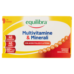 Integratore alimentare a base di Vitamine e Minerali, indicato nei casi di ridotto apporto con la dieta o di aumentato fabbisogno di tali nutrienti. Il prodotto contiene anche luteina. I vantaggi delle compresse Equilibra studia attentamente i propri prodotti: oltre all'accurata scelta delle materie prime ricerca i veicoli migliori per rendere i componenti principali rapidamente ed efficacemente disponibili per l'organismo, per offrire ai propri consumatori il miglior standard qualitativo possibile. Le compresse consentono di avere un prodotto ad alta concentrazione.
