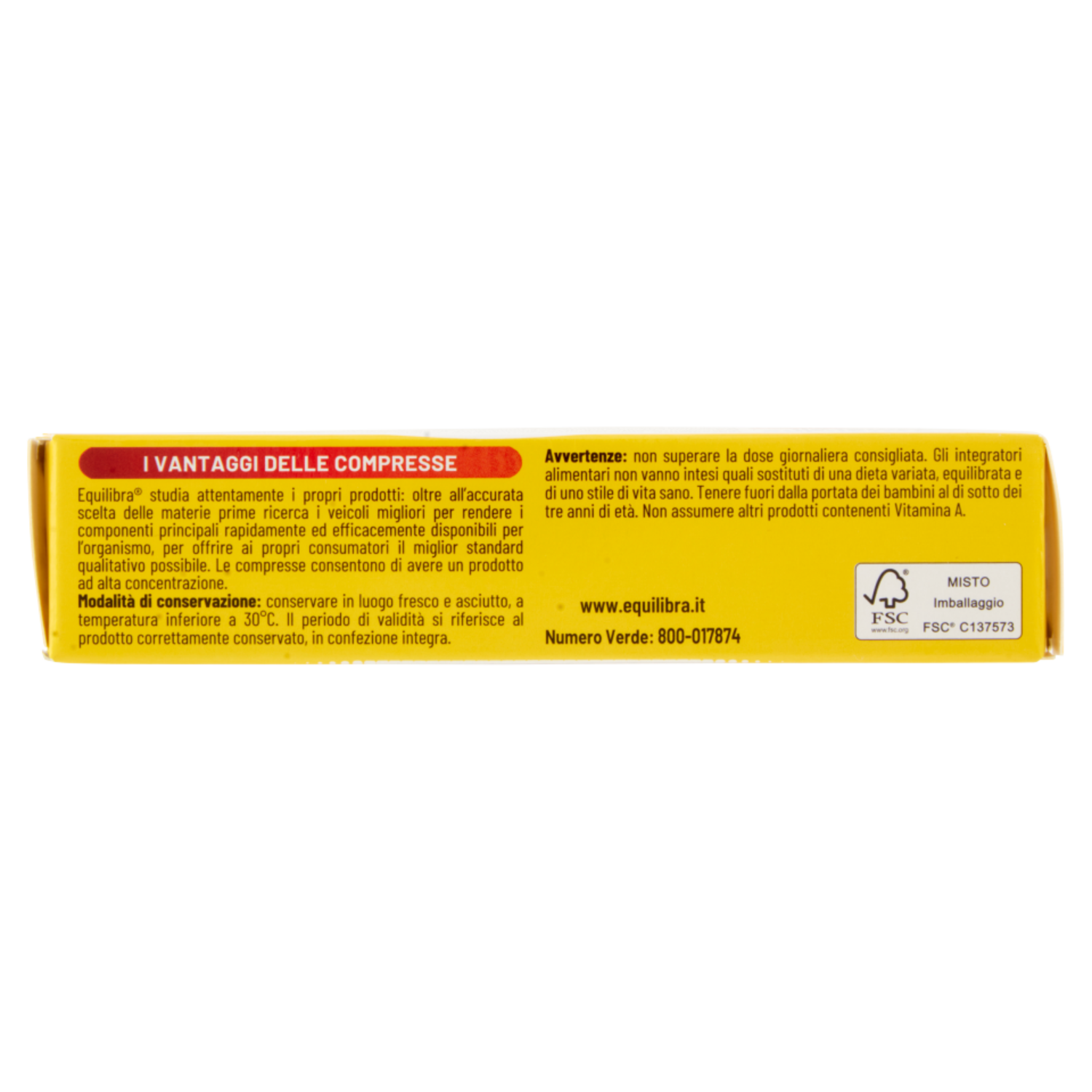 Avvertenze: non superare la dose giornaliera consigliata. Gli integratori alimentari non vanno intesi quali sostituti di una dieta variata, equilibrata e di uno stile di vita sano. Tenere fuori dalla portata dei bambini al di sotto dei tre anni di età. Non assumere altri prodotti contenenti Vitamina A.