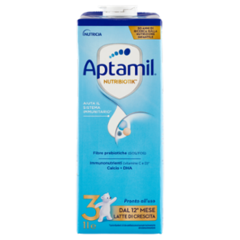 Aptamil Nutribiotik 3 Nutrizionalmente su misura per il bambino Il nostro team di ricercatori, tra cui esperti di immunologia, si dedica allo studio della nutrizione infantile ispirandosi al latte materno e ha sviluppato una formula che contiene nutrienti specifici per la sua crescita. - Fibre prebiotiche GOS/FOS - Immunonutrienti vitamine C e D che contribuiscono al normale funzionamento del sistema immunitario - Calcio contribuisce al normale sviluppo delle ossa - DHA
