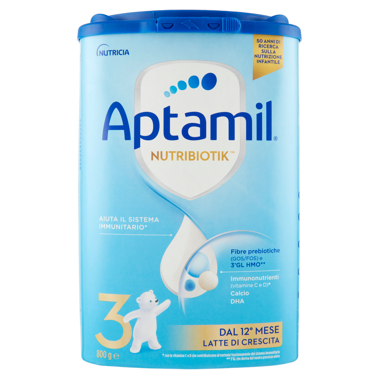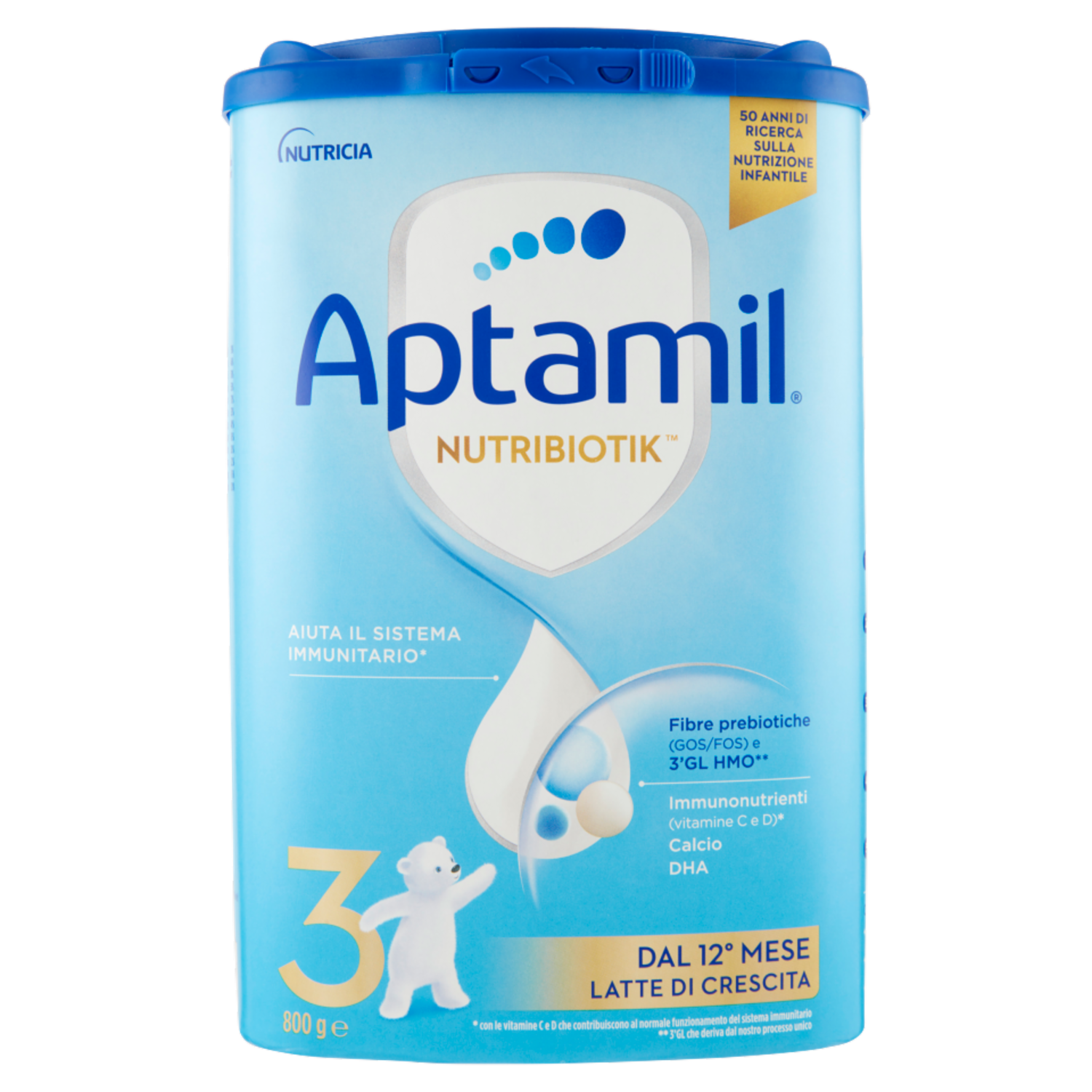 L'inizio della vita del tuo bambino è un momento speciale. È bello, a volte imprevedibile, e impegnativo. Avrai molto a cui pensare e noi vogliamo esserti accanto. Da 50 anni ci dedichiamo alla ricerca sulla nutrizione infantile e trasferiamo tutto il nostro sapere nelle nostre formule per supportare il sistema immunitario grazie alle vitamine C e D e lo sviluppo del tuo bambino grazie alla presenza di calcio. 50 anni di ricerca sulla nutrizione infantile Nutribiotik 3 Nutrizionalmente su misura per il bambino Il nostro team di ricercatori, tra cui esperti di immunologia, si dedica allo studio della nutrizione infantile ispirandosi al latte materno e ha sviluppato una formula che contiene nutrienti specifici per la sua crescita. - 3'GL HMO**, uno degli oligosaccaridi naturalmente presenti nel latte materno - Fibre prebiotiche GOS/FOS - Immunonutrienti vitamine C e D che contribuiscono al normale funzionamento del sistema immunitario - Calcio contribuisce al normale sviluppo delle ossa - DHA **3'GL che deriva dal nostro processo unico Una confezione progettata per te - Doppio sigillo di sicurezza Per essere sicuri che la confezione non sia stata aperta - Click per chiudere Per maggiore sicurezza da contaminazioni e fuoriuscite - Facile da usare con una mano Per quando tieni in braccio il tuo bambino