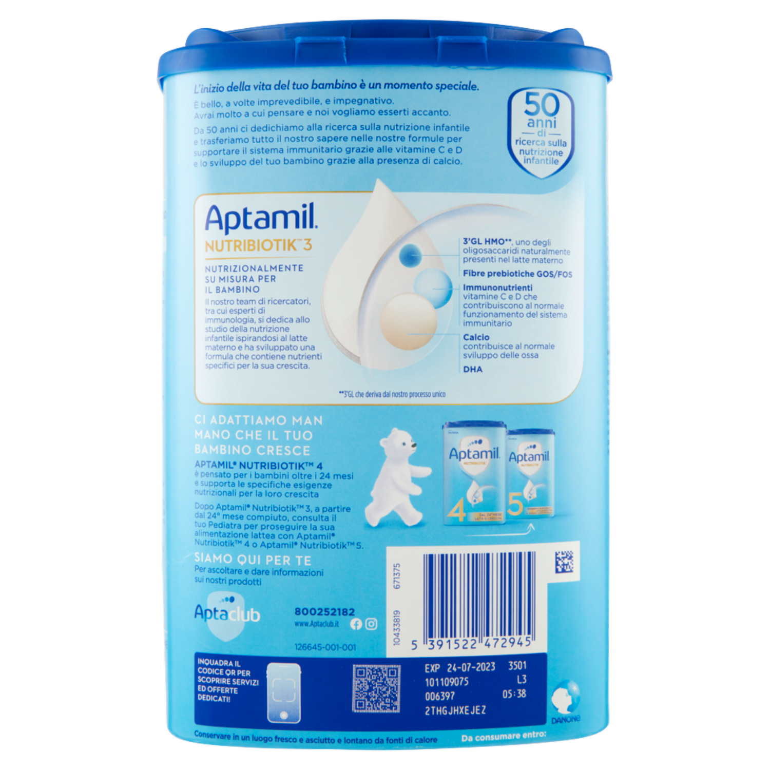 Aptamil distribuito da Danone Nutricia S.p.A. Società Benefit Via Carlo Farini, 41 20159 Milano (MI)