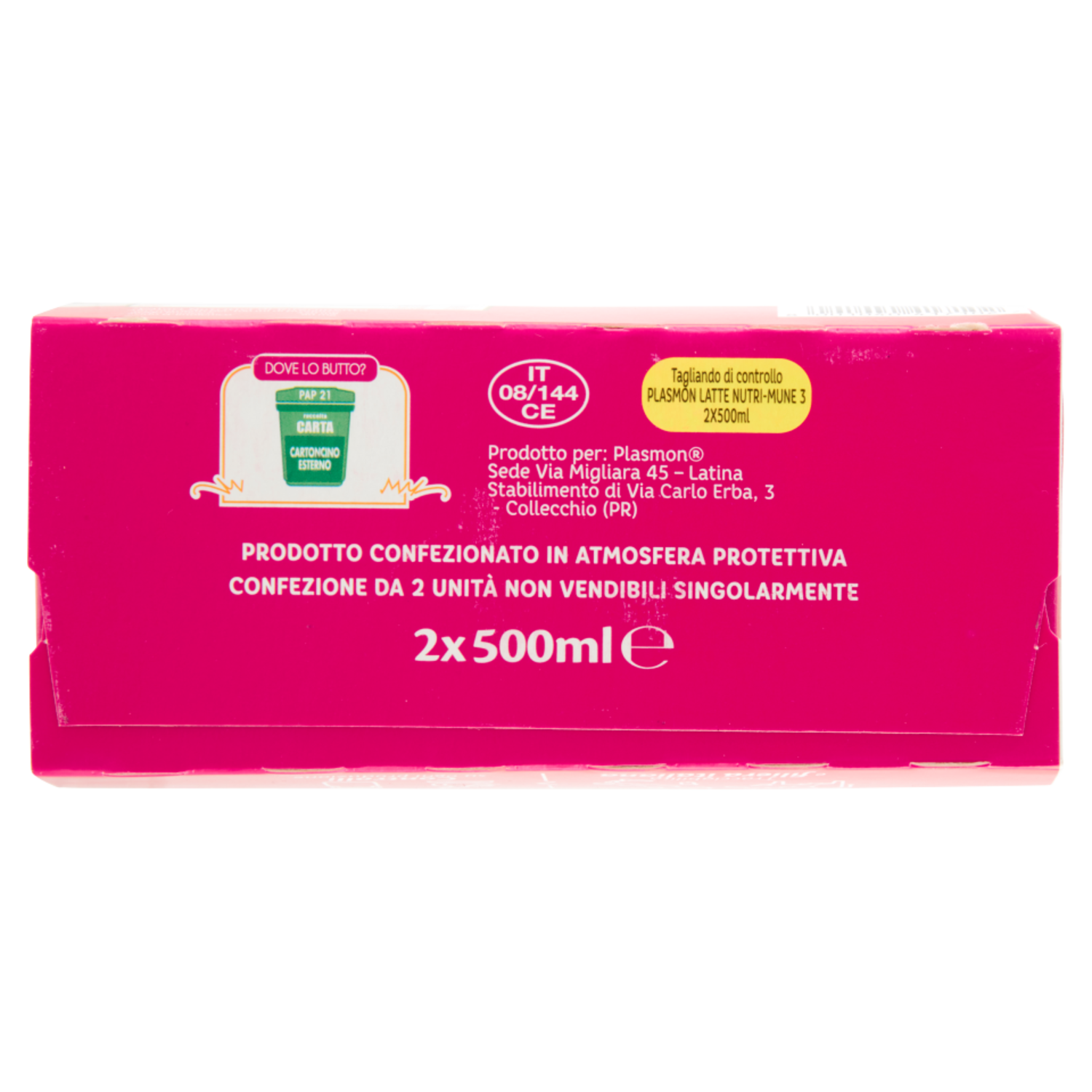 Modalità d'uso Plasmon Nutri-mune 3 è pronto per l'uso e può essere consumato a temperatura ambiente o caldo. Non portare ad ebollizione per mantenere inalterato il valore nutrizionale del prodotto. Agitare bene prima dell'uso. L'utilizzo e la conservazione inadeguate possono essere causa di disturbi o rischi per la salute del bambino. Seguire attentamente le istruzioni riportate. Non riutilizzare l'eventuale latte rimasto nel biberon o nella tazza. Importante: il latte materno è l'alimento ideale per il bambino. È raccomandato come componente lattea di una dieta equilibrata anche dopo l'anno di vita. Sterilizzato UHT Pronto per l'uso