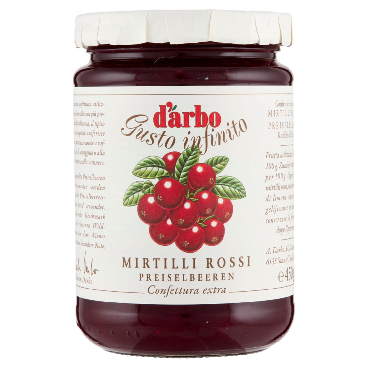 Per la nostra confettura utilizziamo solo i mirtilli rossi più pregiati della Scandinavia. Il tipico sapore amarognolo conferisce una nota particolare anche a raffinati piatti di selvaggina o alla classica cotoletta alla viennese. Martin Darbo