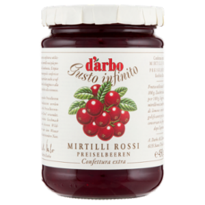 Per la nostra confettura utilizziamo solo i mirtilli rossi più pregiati della Scandinavia. Il tipico sapore amarognolo conferisce una nota particolare anche a raffinati piatti di selvaggina o alla classica cotoletta alla viennese. Martin Darbo