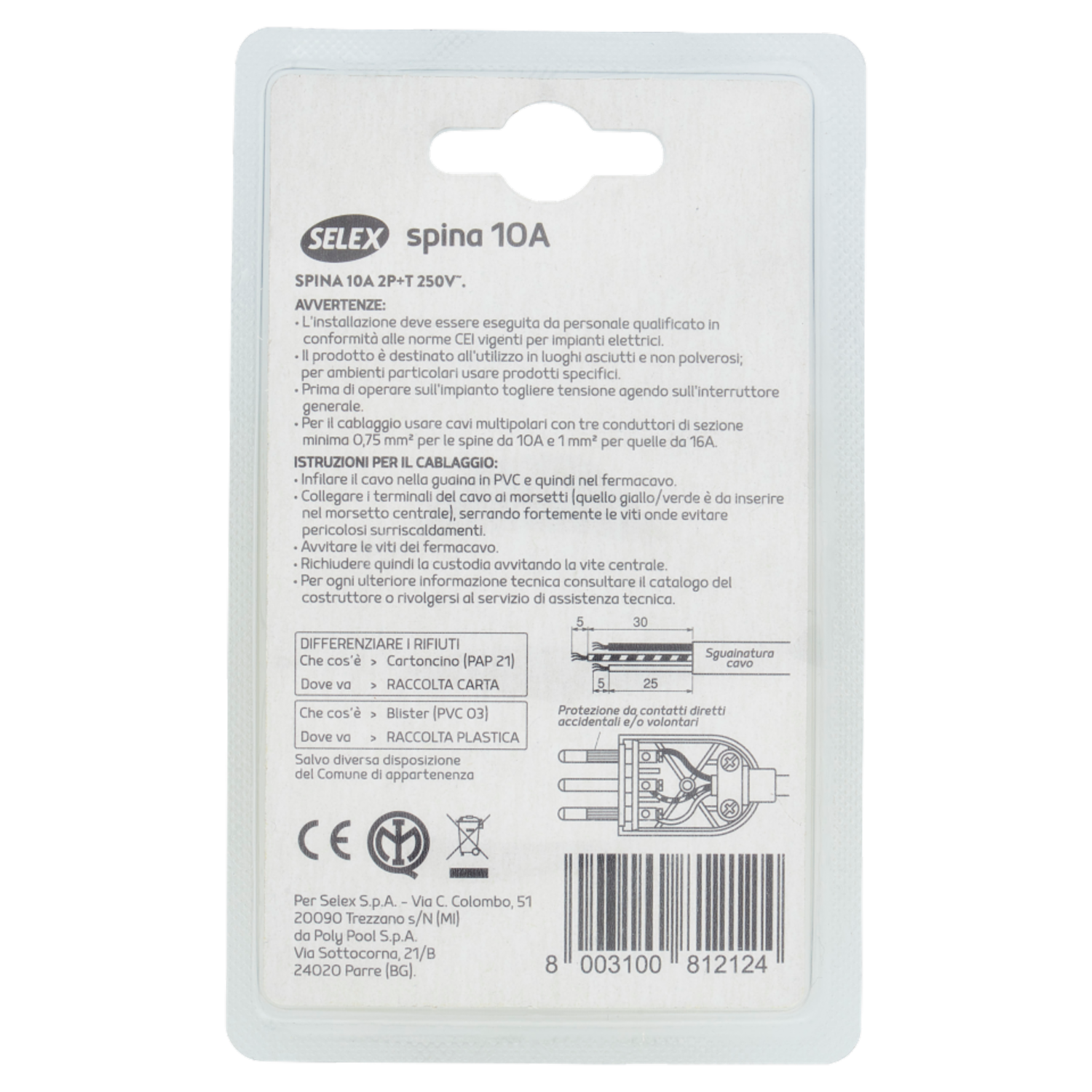 AVVERTENZE: - L'installazione deve essere eseguita da personale qualificato in conformità alle norme CEI vigenti per impianti elettrici. - Il prodotto è destinato all'utilizzo in luoghi asciutti e non polverosi; per ambienti particolari usare prodotti specifici. - Prima di operare sull'impianto togliere tensione agendo sull'interruttore generale. - Per il cablaggio usare cavi multipolari con tre conduttori di sezione minima 0,75 mm² per le spine da 10A e 1 mm² per quelle da 16A.