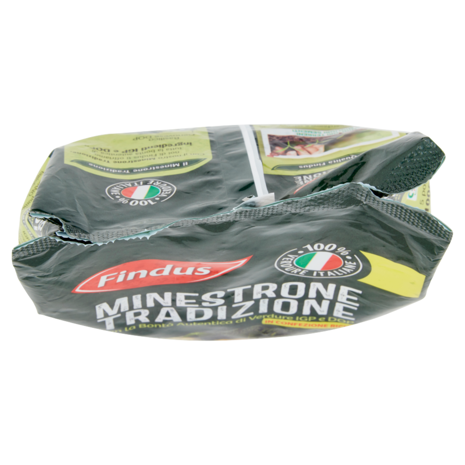 La Qualità Findus Migliori terreni e migliori sementi Noi di Findus ricerchiamo e selezioniamo i migliori terreni e le migliori varietà di sementi, coltivando nel massimo rispetto della natura per poter garantire sempre raccolti di qualità. Raccolte nel momento perfetto e surgelate entro poche ore* Tutte le verdure vengono raccolte nel momento migliore della propria maturazione e vengono surgelate entro poche ore* dalla raccolta per garantirti la massima freschezza e un sapore autentico. Da agricoltura sostenibile Le verdure del nostro Minestrone Tradizione sono coltivate con amore e rispettando uno dei più autorevoli standard internazionali in tema di sostenibilità, verificato da un ente terzo. Scopri di più su findus.it *le patate, le carote, le cipolle, il porro, la zucca per le loro caratteristiche non richiedono di essere raccolte e surgelate in poche ore. Il Minestrone Tradizione Con il nostro Minestrone Tradizione, noi di Findus ti offriamo tutta la bontà autentica di ingredienti IGP e DOP... Basilico Genovese DOP Patata del Fucino IGP Cipolla rossa di Tropea Calabria IGP ...e il gusto unico di verdure 100% italiane, coltivate solo in terreni selezionati. Fagioli, Porro, Fagiolini, Zucca, Prezzemolo, Carote, Pomodori, Piselli, Verza, Bieta, Zucchine, Sedano 1Kg confezione Salva Spazio