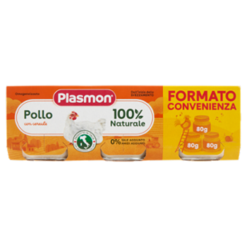 6 - 36 mesi Lo svezzamento è un viaggio alla scoperta di gusti e consistenze. Plasmon, in accordo con l'OMS, sostiene l'allattamento esclusivo al seno per almeno i primi sei mesi di vita, e ove possibile fino ai due anni quale componente lattea della sua dieta salvo diverso parere del pediatra. Filiera italiana certificata Tracciabilità e sicurezza garantite da Oasi nella crescita Elevati standard di qualità da allevamenti italiani selezionati Attenti all'ambiente confezione riciclabile Prodotto in Italia - Con ingredienti italiani Filiera certificata - In collaborazione con il Ministero delle Politiche Agricole, Alimentari e Forestali Ricetta semplice e cottura al vapore Acqua di cottura Pollo 100% Italiano Farina di riso Succo di limone Solo quello che vedi trasparenza dal campo al vasetto - Senza amidi e aromi aggiunti - Senza sale e olio aggiunti - Senza coloranti* e conservanti* *Come per legge Senza glutine