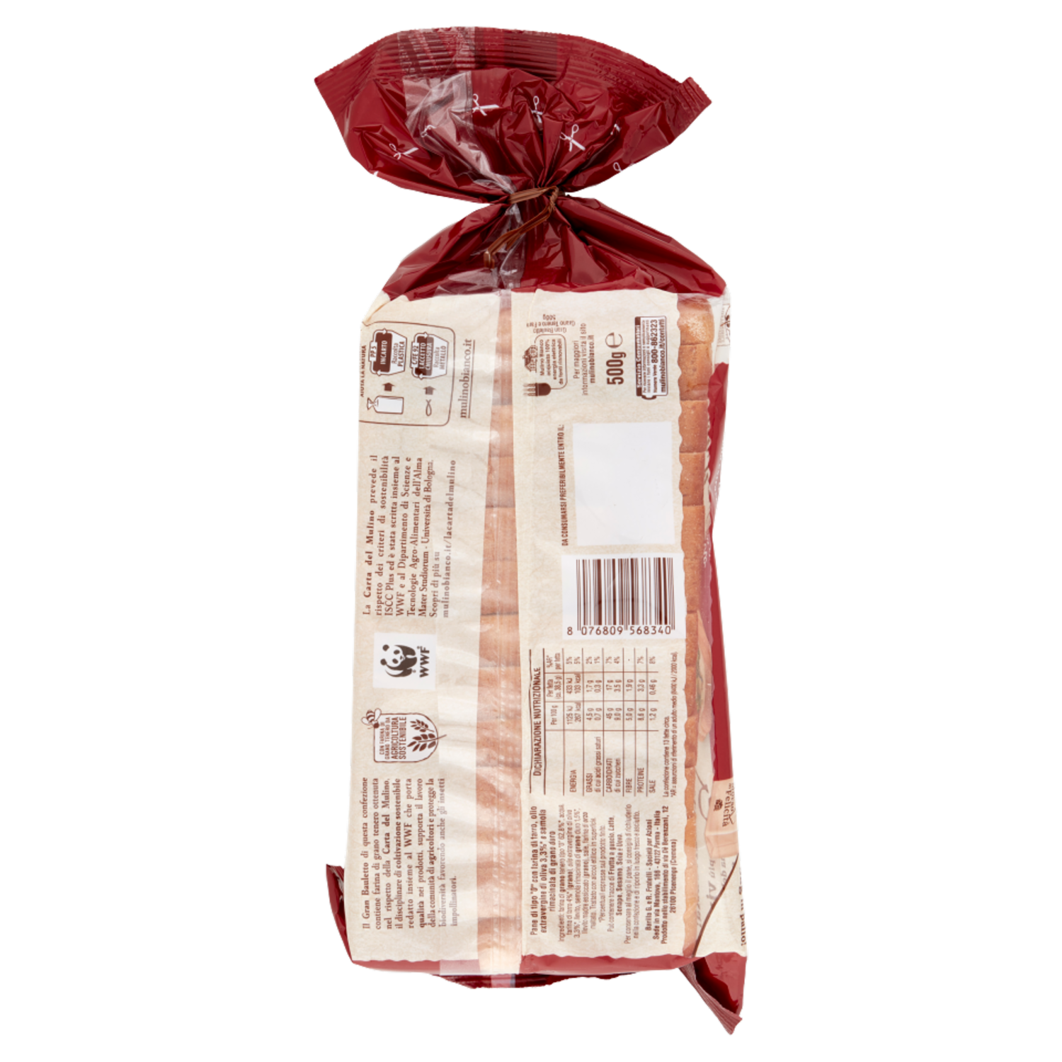 La Carta del Mulino Il Gran Bauletto di questa confezione contiene farina di grano tenero ottenuta nel rispetto della Carta del Mulino, il disciplinare di coltivazione sostenibile redatto insieme al WWF che porta qualità nei prodotti, supporta il lavoro della comunità di agricoltori e protegge la biodiversità favorendo anche gli insetti impollinatori. Con farina di grano tenero da agricoltura sostenibile La Carta del Mulino prevede il rispetto dei criteri di sostenibilità ISCC Plus ed è stata scritta insieme al WWF e al Dipartimento di Scienze e Tecnologie Agro-Alimentari dell'Alma Master Studiorum - Università di Bologna. Scopri di più su mulinobianco.it/lacartadelmulino mulinobianco.it