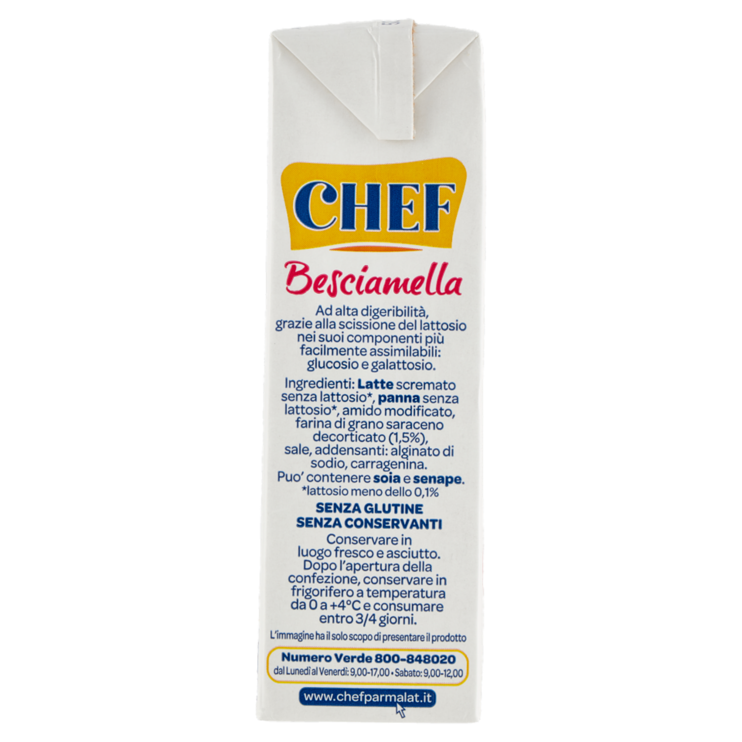 Besciamella Pronta per cucinare, con farina di grano saraceno senza lattosio (meno dello 0,1%) UHT a lunga conservazione