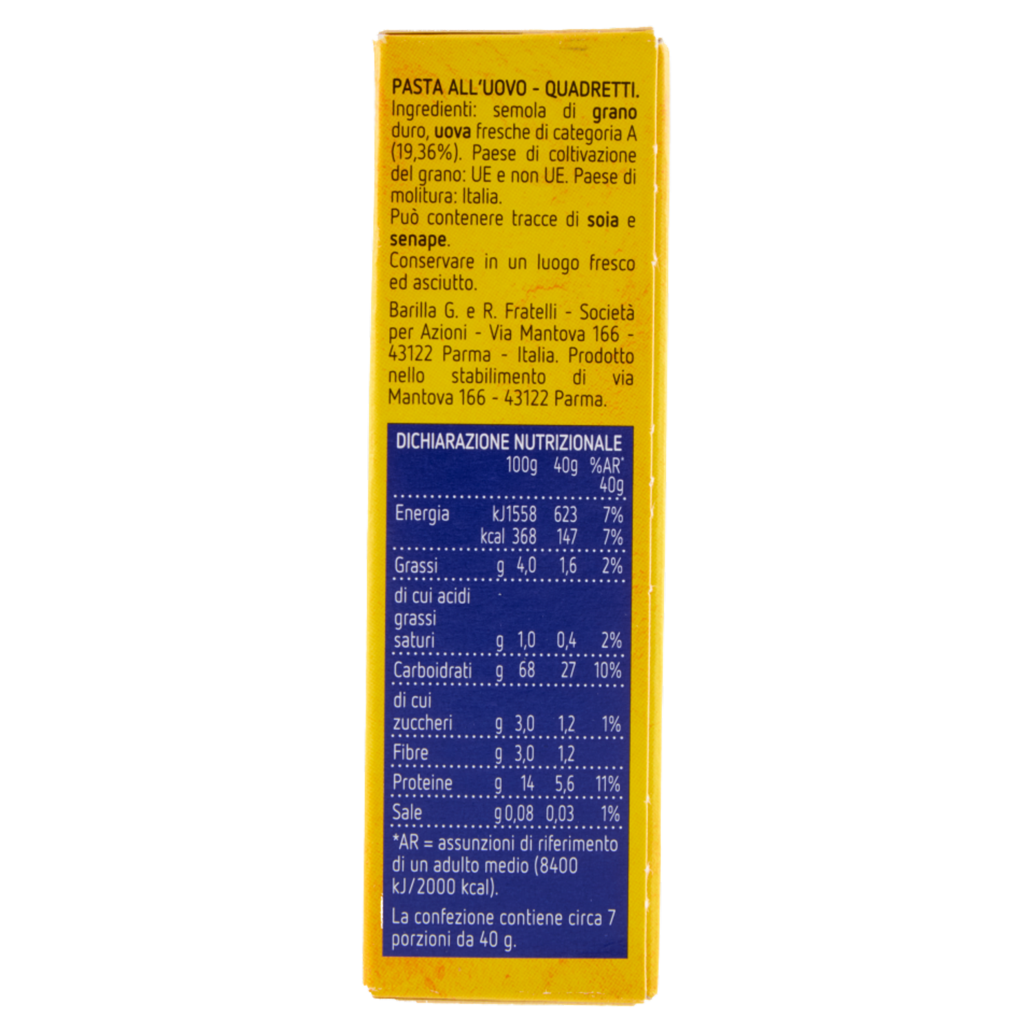Barilla G. e R. Fratelli - Società per Azioni Via Mantova 166 43122 Parma Italia Prodotto nello stabilimento di via Mantova 166 43122 Parma