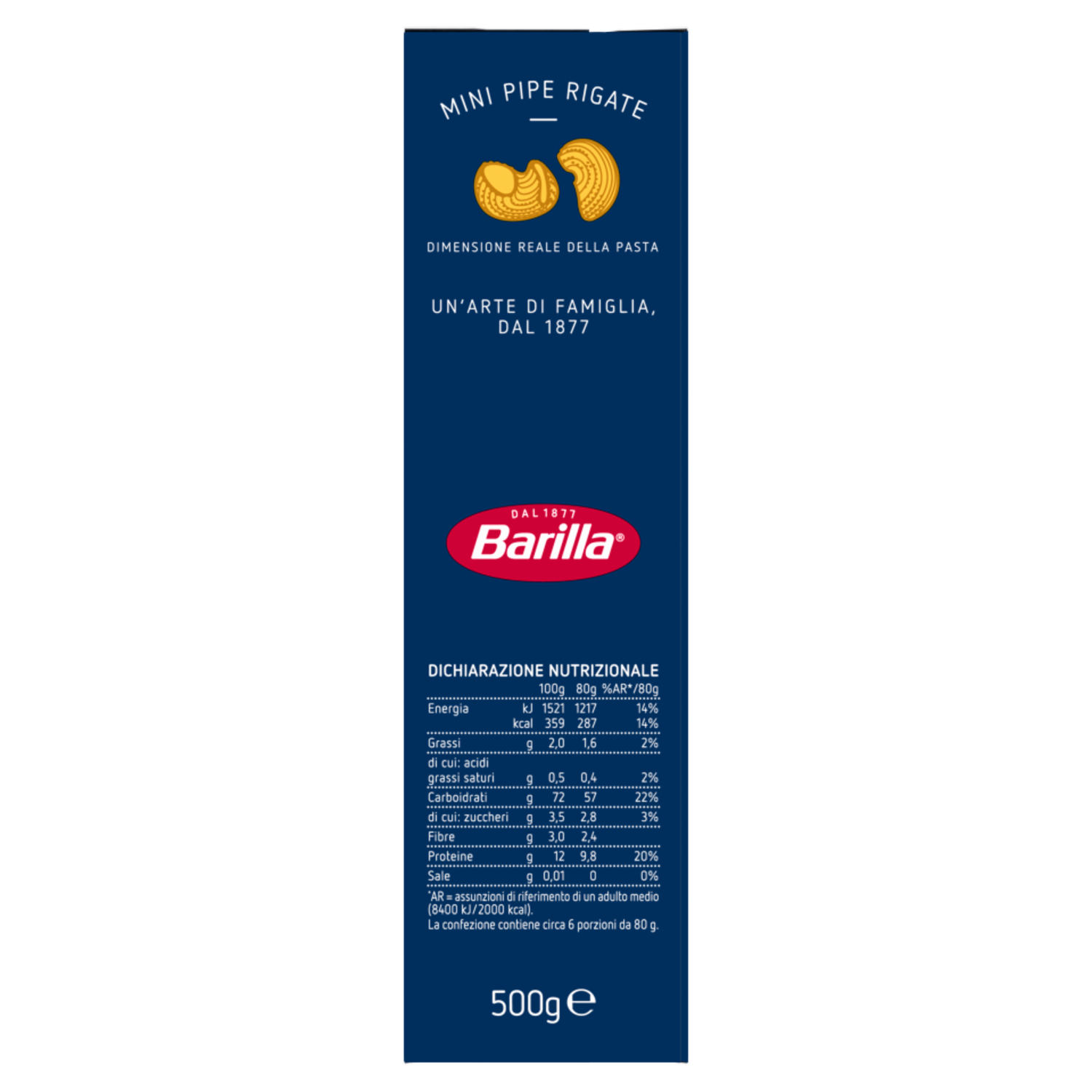 Barilla Dal 1877 Bontà dal cuore Italiano Così come ti prendi cura della tua famiglia, noi ci prendiamo cura della nostra pasta: per questo prodotto selezioniamo solo grano duro 100% italiano. La magia negli occhi dei Bambini Sorprendi i tuoi bambini aggiungendo alle tue ricette un tocco di creatività con i mini formati di piccolini. Per il loro Domani Abbiamo tolto la finestra da questa confezione, un piccolo contributo per lasciare ai nostri bambini un pianeta con meno plastica*. *scopri di più su barilla.com/box Un gusto d'Amore Ogni giorno ci impegnamo a darti la nostra pasta migliore per far felici grandi e piccini. Piccolini si nasce, grandi si diventa