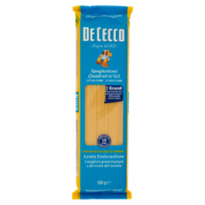 De Cecco - Mugnai dal 1831 - Metodo De Cecco 1. Lenta essiccazione Era il 1889, come attestato anche nell'Enciclopedia Treccani, quando Filippo De Cecco inventò il primo impianto di "Lenta Essiccazione" a bassa temperatura. Ancora oggi usiamo lo stesso metodo per meglio preservare i sapori e i profumi del grano e il colore naturale della nostra semola per una Pasta di Qualità Superiore. 2. I migliori grani duri Selezioniamo i migliori grani duri italiani e del resto del mondo per qualità del glutine, salubrità, contenuto proteico e caratteristiche organolettiche per garantire costantemente, nonostante la variabilità dei raccolti, una pasta tenace alla masticazione e dal gusto intenso. 3. Semola a grana grossa Pastifichiamo solo semola a grana "grossa" per preservare l'integrità del glutine ed ottenere una pasta sempre al dente. 4. Acqua fredda di montagna Impastiamo solo con acqua fredda di montagna della Majella, ad una temperatura minore di 15°C per assicurare una perfetta tenuta in cottura. 5. Trafilatura ruvida Trafiliamo la nostra pasta ruvida per garantire la porosità ottimale a catturare al meglio i condimenti. Di padre in figlio È nel 1831 che la famiglia De Cecco inizia la propria tradizione molitoria nel Molino di Fara San Martino, una vocazione che nel 1886 diviene arte pastaia. Una lunga storia di passione che unisce la selezione di grani eccellenti al sapere unico di una lavorazione antica per una Pasta di Qualità Superiore. La qualità della nostra pasta è certificata