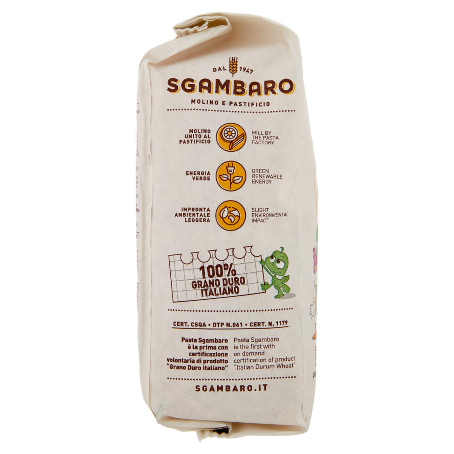100% Grano duro italiano - Cert. CSQA - DTP n.061 - Cert. n. 1179 - Pasta Sgambaro è la prima con certificazione volontaria di prodotto "Grano Duro Italiano"