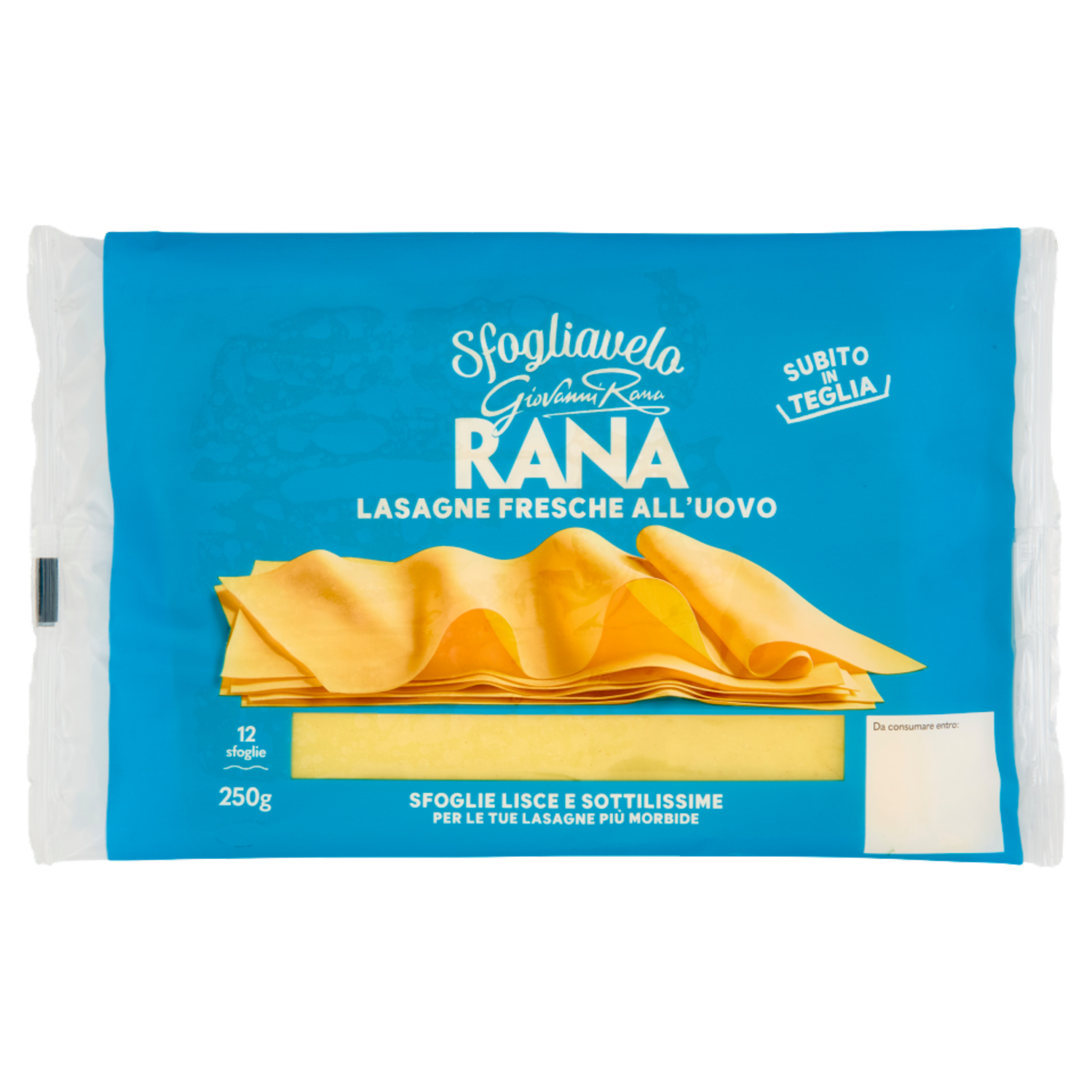 Uova extra fresche Da galline allevate all'aperto Per le nostre Lasagne scegliamo uova da allevamenti che rispettino il benessere animale e garantiscano alle galline grande libertà di muoversi, di razzolare e di esprimere comportamenti naturali. Mangimi 100% vegetali Le galline sono alimentate con una selezione di mangimi 100% vegetali, senza l'aggiunta di coloranti artificiali. L'originale sfoglia sottilissima di Giovanni Rana, per creare una morbida fusione tra pasta e ragù Usiamo farina di grano tenero per mantenere la morbidezza e l'elasticità, semola di grano duro per garantire la consistenza e la tenuta in cottura. Sfoglie comode da separare grazie ai pratici interfogli.