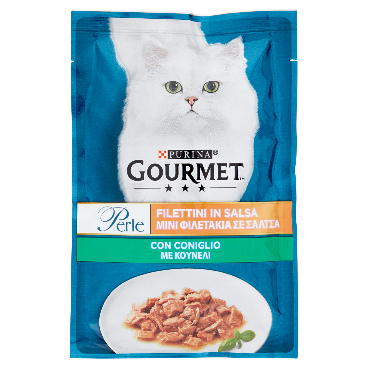 Il tuo gatto è un vero intenditore e a volte tentarlo può essere estremamen te difficile. Ecco perché GOURMET PERLE ha creato Filettini in Salsa, delic te ricette che stuzzicheranno ogni giorno i sensi del tuo gatto con un'irre istibile esperienza di gusto. Raffinati bocconcini con carni o pesce, tagli ti in filetti sottili e delicatamente cotti nella loro salsa saporita per d liziare il palato raffinato del tuo gatto. Filettini in Salsa di GOURMET PE LE, eleganti tentazioni per un'esperienza di gusto unica, ogni giorno. Tutt le varietà GOURMET PERLE, sono disponibili in buste da 85g per conservare l sapore di ogni ricetta.