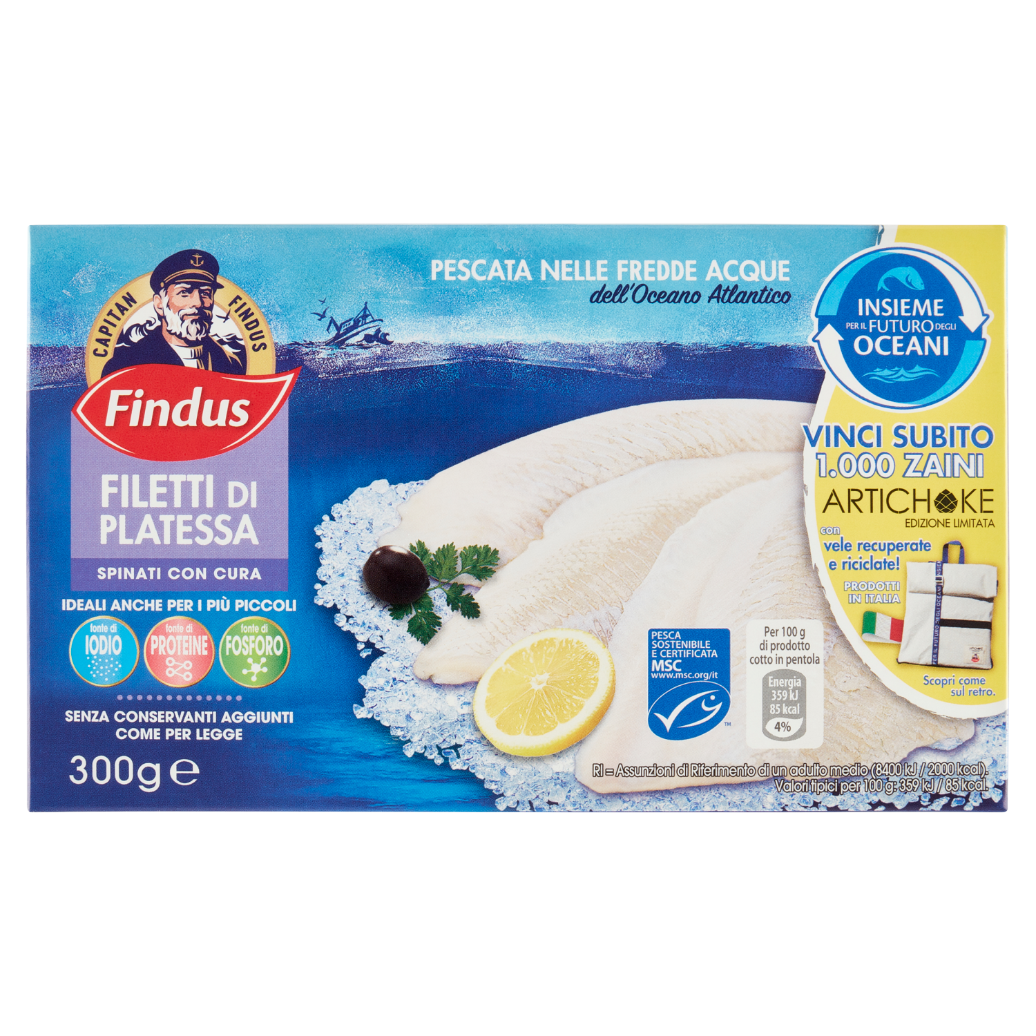 Insieme per il futuro degli oceani Vinci Subito 1.000 Zaini Artichoke Edizione Limitata con vele recuperate e riciclate! Prodotti in Italia Grazie alla collaborazione con Artichoke Bags, con ogni zaino recuperiamo e diamo nuova vita alle vele dismesse, altrimenti non riciclabili. Per continuare il nostro percorso, Insieme per il Futuro degli Oceani! Partecipa al concorso! Con ogni prodotto Capitan Findus puoi vincere 1 dei 1.000 zaini in edizione limitata, realizzati artigianalmente in Italia, con vele recuperate e riciclate! Scopri di più su insiemeperilfuturodeglioceani.it Scegli la tua versione di zaino preferita! Artichoke edizione limitata Bambino, Adulto Acquista un prodotto Capitan FIndus, conserva lo scontrino, collegati al sito del concorso e prova a vincere uno dei 1.000 zaini in palio. Concorso valido dal 01/11/2021 al 31/05/2022, con eventuale estrazione a recupero entro il 30/06/2022. Montepremi stimato 63.000,00 € + IVA. Prodotti in promozione, tipologia e quantità di premi, limitazioni, modalità di partecipazione e regolamento su www.insiemeperilfuturodeglioceani.it.