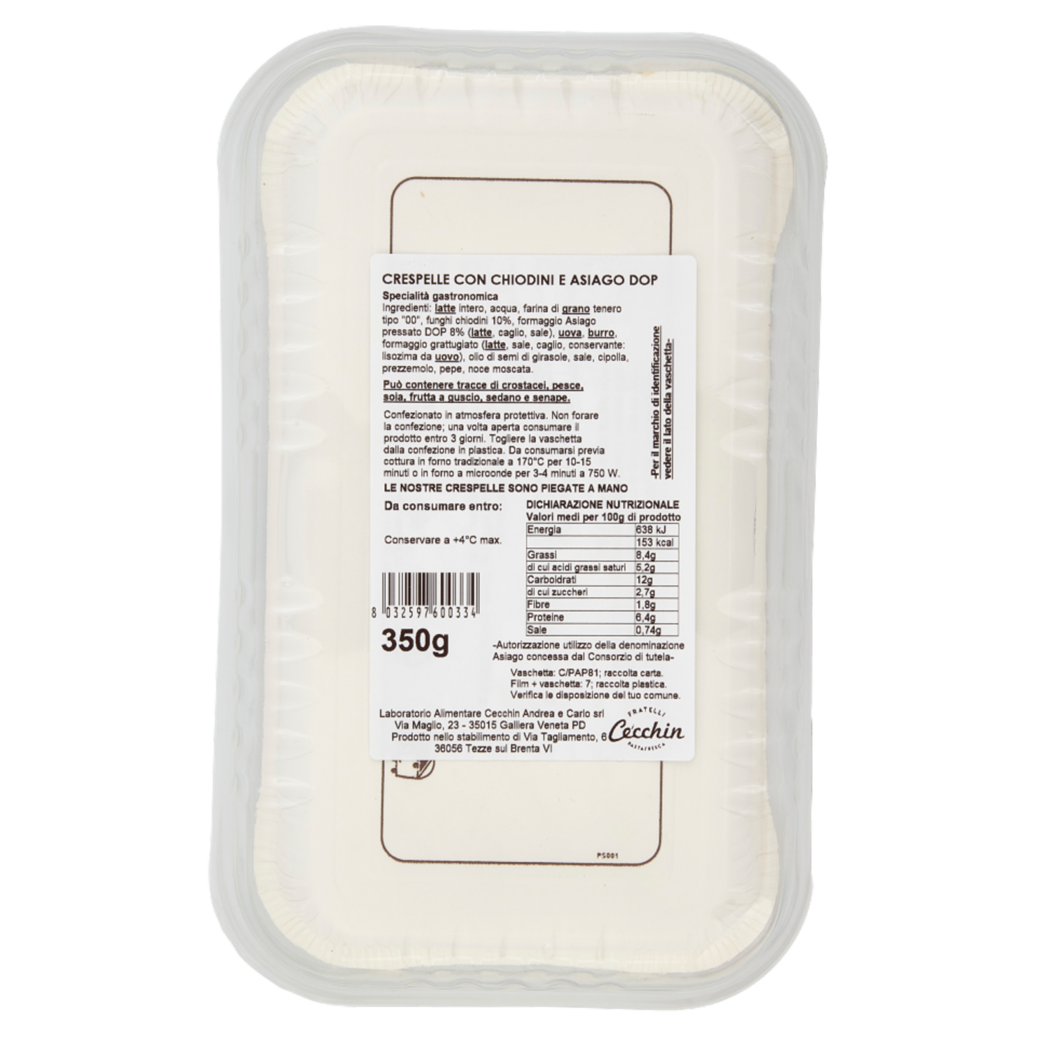 Laboratorio Alimentare Cecchin Andrea e Carlo srl Via Maglio, 23 35015 Galliera Veneta PD Prodotto nello stabilimento di Via Tagliamento, 6 36056 Tezze sul Brenta VI