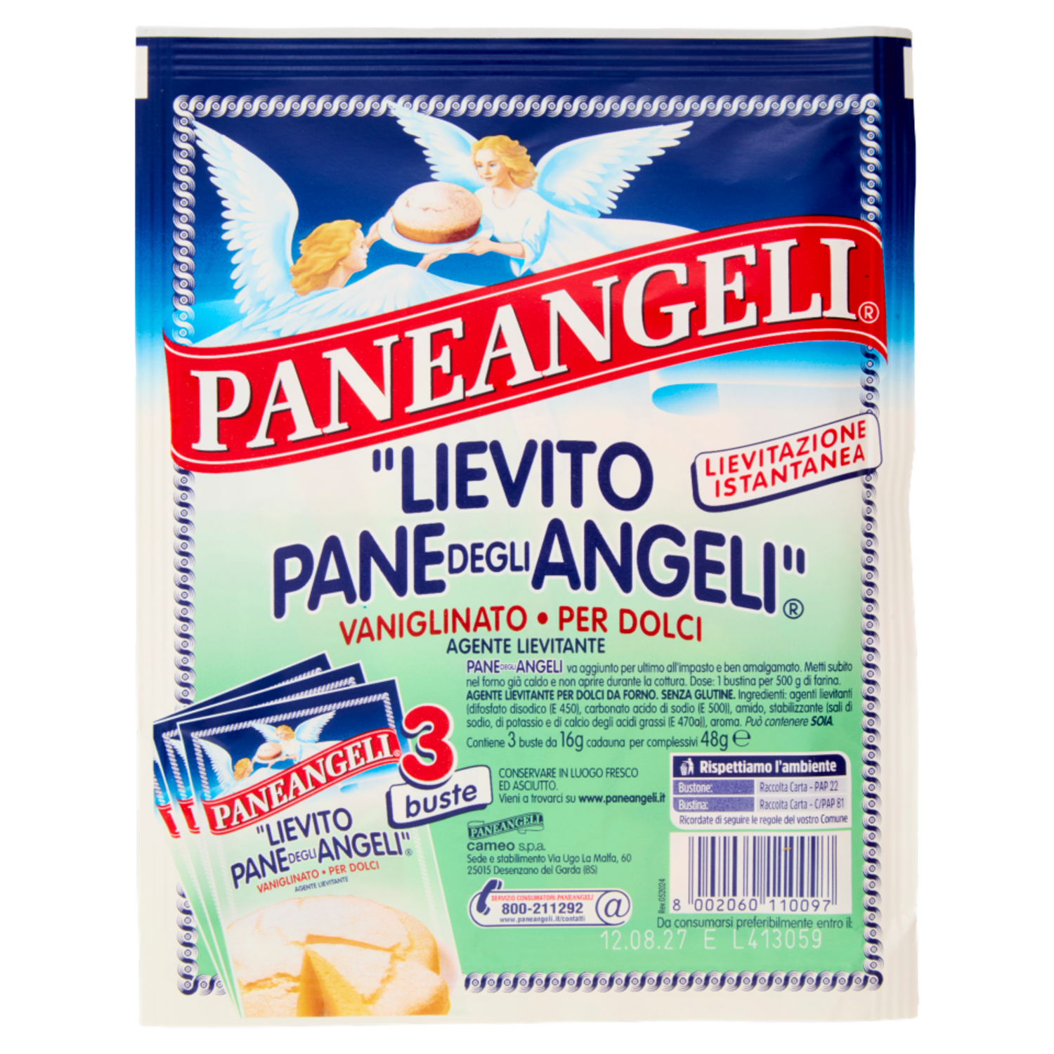 Con 90 anni di tradizione Pane degli Angeli garantisce la lievitazione perfetta di torte di pasta morbida, pasta Margherita, Pan di Spagna, pasta frolla e biscotti e conferisce loro una delicata fragranza di vanillina.