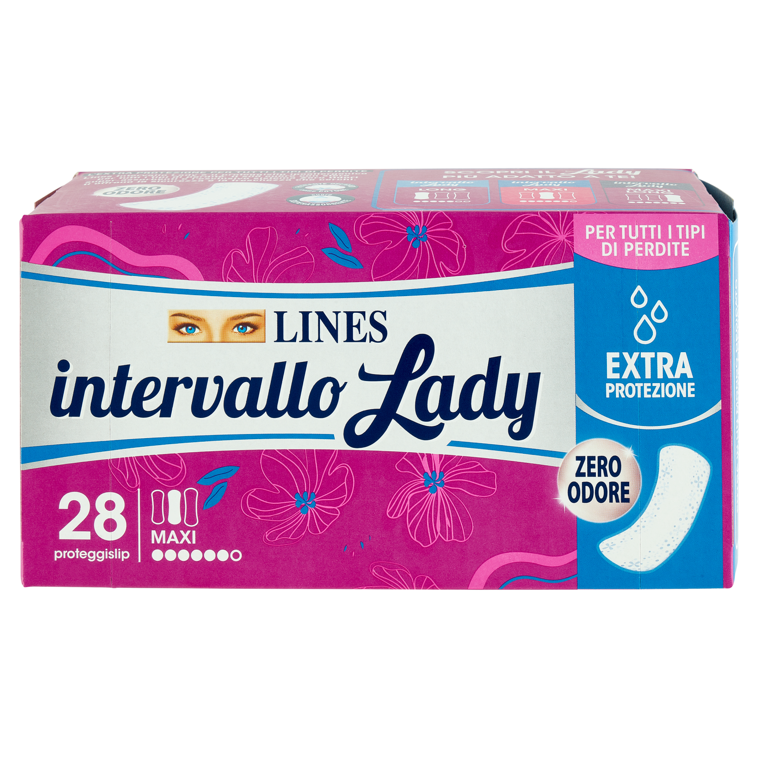 L'extra protezione per tutti i tipi di perdite Lines Intervallo Lady è il proteggislip ipoallergenico per tutti i tipi di perdite. Il suo cuore con sfere super-assorbenti e l'esclusivo sistema Zero Odori ti offrono la sicurezza e la freschezza che cerchi. Zero odore Filtrante Delicato come Cotone cuore Superassorbente