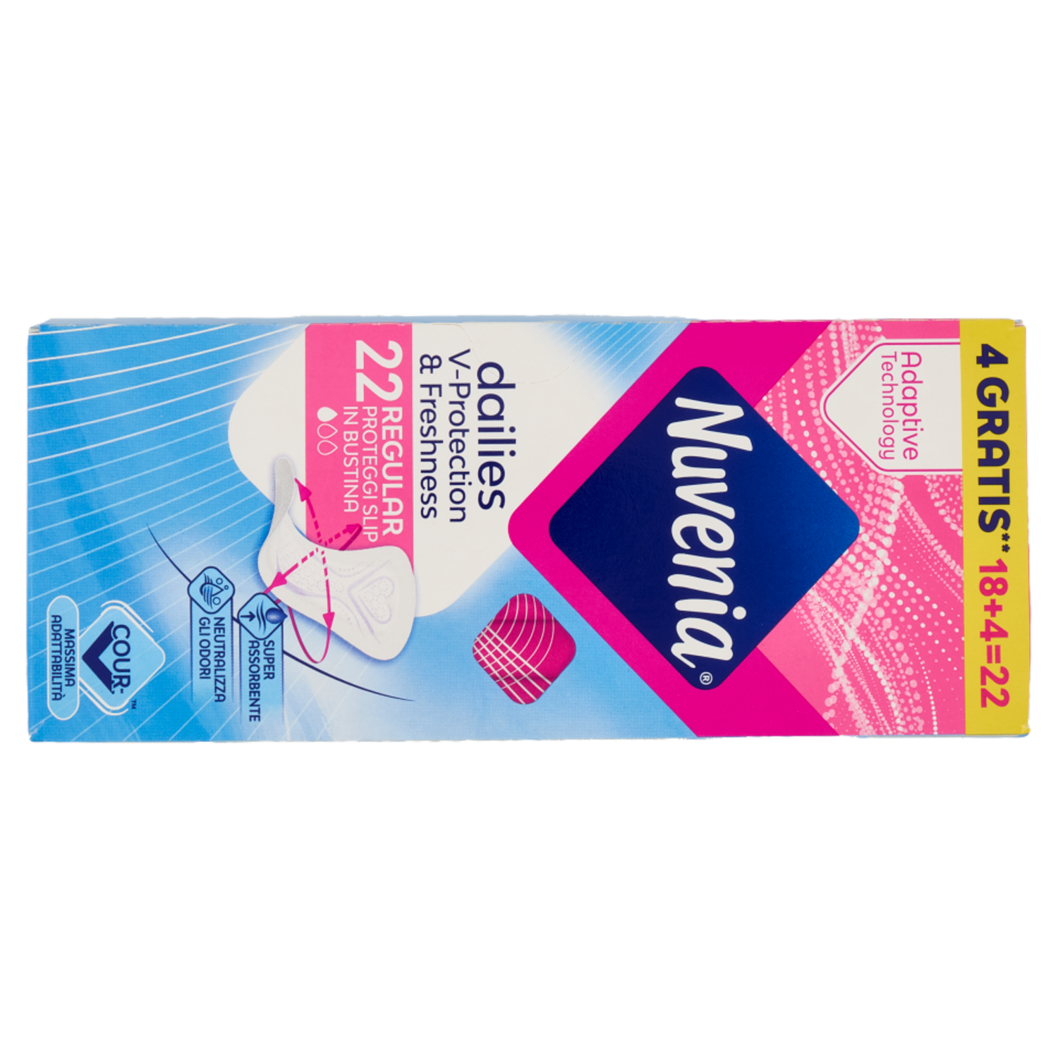 V-Fresca & Protetta La forma, il colore, l'odore della tua V-Zone ...tutto è unico di te. Qualsiasi tipo di protezione preferisci o livello di freschezza, noi abbiamo il proteggi slip più adatto a te. La tua V-Zona (che non è solo tua vagina o vulva!) è unica ed è importante prendersene cura nel modo giusto ogni giorno. Cour-V - Massima adattabilità Una tecnologia unica, che davvero si adatta all'unicità delle tue forme, così da offrirti massimo comfort e protezione per tutta la giornata. Super assorbente - Neutralizza gli odori I nostri proteggi slip sono sottili e super assorbenti. Assorbono istantaneamente i fluidi e gli odori, e sono traspiranti per mantenere la tua V-Zona fresca. Testato dermatologicamente La tua V-Zone. Il tuo pianeta. Teniamo a entrambi. Il nostro obiettivo è Ridurre l'Impronta di Carbonio del 30% entro il 2030 con prodotti, imballaggi e processi produttivi sempre più sostenibili, utilizzando materiali riciclati e da fonti rinnovabili. Cosa c'è di nuovo *I nostri comodi proteggi slip sono prodotti e concepiti responsabilmente con un minore uso di risorse per ridurre l'impatto ambientale. Inoltre, per renderli ad impatto zero, per ogni confezione acquistata, investiamo nel ripristino delle aree forestali del pianeta, così da compensare le emissioni di carbonio prodotte. Maggiori informazioni sul sito www.nuvenia.it *La CO₂ è ridotta rispetto alla specifica di prodotto precedente basandoci sulle Valutazioni del Ciclo di Vita del prodotto condotte da Essity. Energia rinnovabile certificata