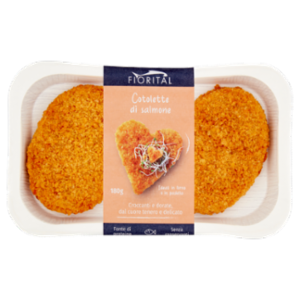 Cotolette di salmone Preparazione gastronomica prefritta pronta alla cottura costituita da parti di pesce