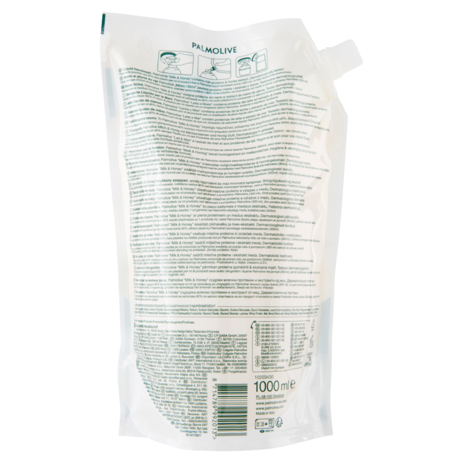 Palmolive "Latte e Miele" contiene proteine del latte ed estratto di miele. Dermatologicamente Testato.