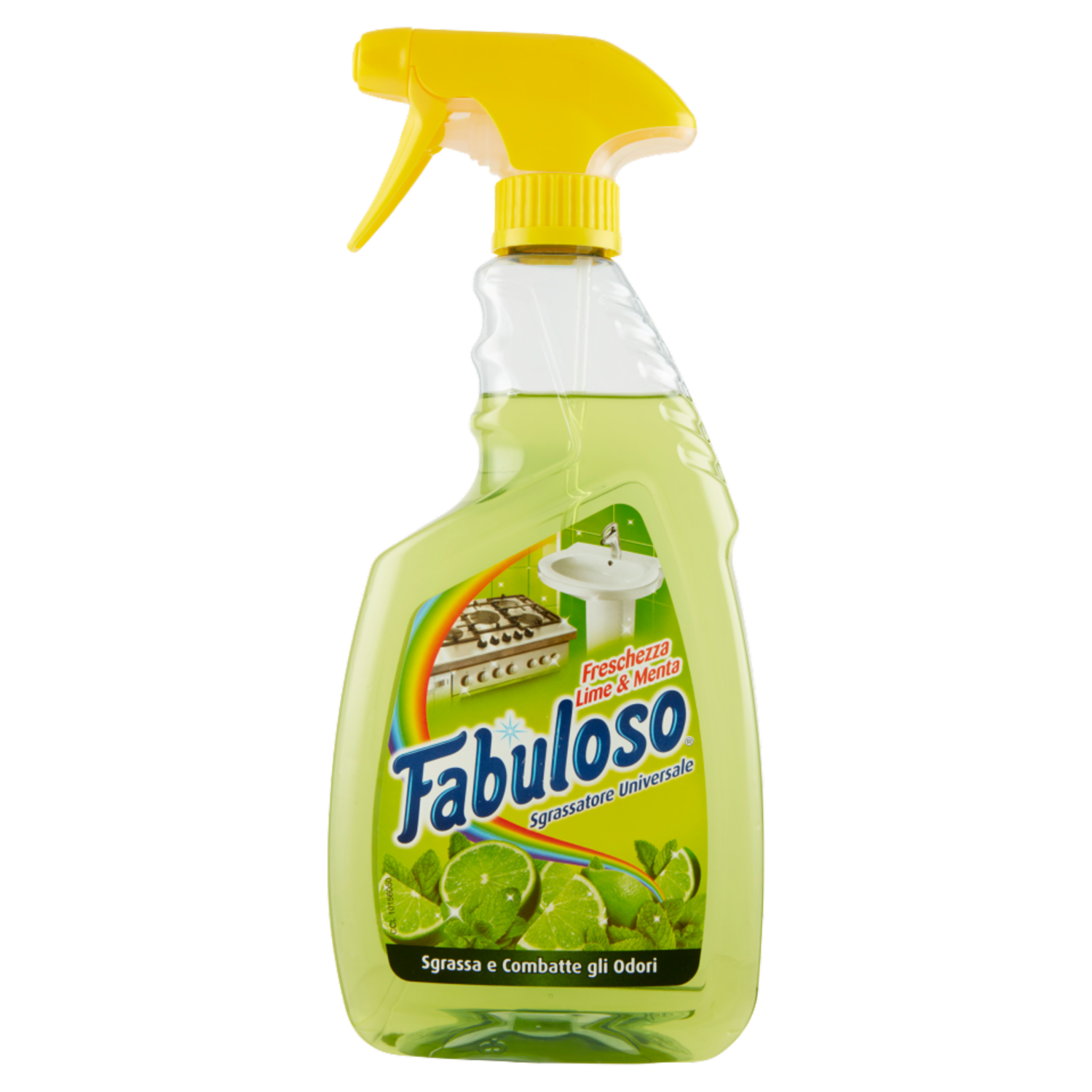 La nuova formula di Fabuloso Sgrassatore Universale, con ingredienti al 97% di origine naturale, rimuove efficacemente anche il grasso più difficile dalle piccole superfici. Grazie al suo potere sgrassante al 100% e alla sua fresca profumazione di lime e menta, crea un'azione Anti Odore che combatte i cattivi odori, lasciando a lungo un gradevole profumo nella tua casa.