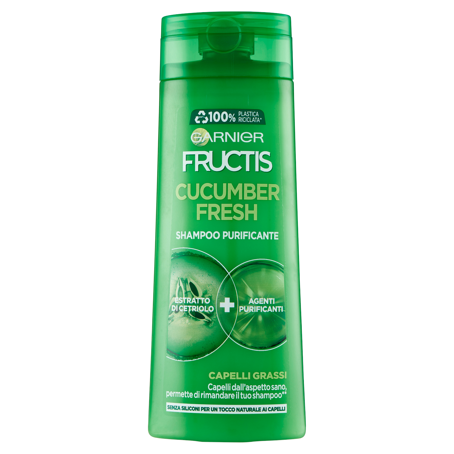 Per capelli forti e dall'aspetto sano. Fructis Pure Non-Stop Grassi. In queste formule Fructis combina gli agenti purificanti con l'estratto di cetriolo, per un'azione riequilibrante e purificante a lunga durata su cute e capelli. Risultato: purificati e leggeri dalle radici, i capelli restano puliti a lungo. Potrai rimandare il prossimo shampoo*. * Test realizzato su 125 donne e 125 uomini in Italia - dopo 2 settimane di utilizzo a casa