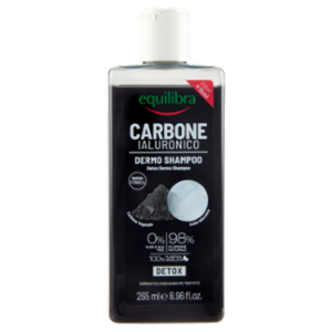 Equilibra Carbone Ialuronico Dermo Shampoo, ideale per cute e capelli impuri, deterge con dolcezza i capelli e il cuoio capelluto appesantiti dall'inquinamento, eccesso di sebo e impurità. Il Carbone Attivo assorbe naturalmente le impurità, donando leggerezza e freschezza. Con Acido Ialuronico che protegge la naturale idratazione del capello. Cosa contiene: Carbone Vegetale: purifica la cute e i capelli; Acido Ialuronico: protegge la naturale idratazione del capello: Aloe Vera (20%): idratante; Idratante Naturale: riveste il capello migliorandone la pettinabilità; Olio Essenziale di Limone: rinfresca e purifica il cuoio capelluto. Senza: parabeni - petrolati - PEG - SLES - SLS - siliconi - coloranti Delicatamente profumato Adatto a pelli sensibili Dermatologicamente testato Made in Italy - Prodotto in Italia 98% Ingredienti naturali Senza parabeni - SLES e SLS