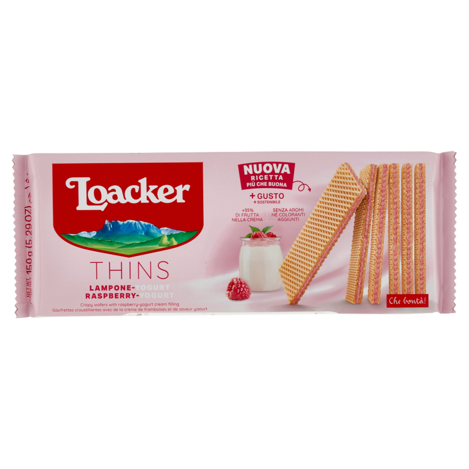 Nuova ricetta + gusto + sostenibile Più che buono* * La nostra crema lampone-yogurt da oggi contiene il 35% di frutta di più. I lamponi che selezioniamo, maturano al calore del sole. con Lamponi maturati al sole Senza aromi né coloranti aggiunti Senza conservanti -17% Plastica rispetto al pack precedente
