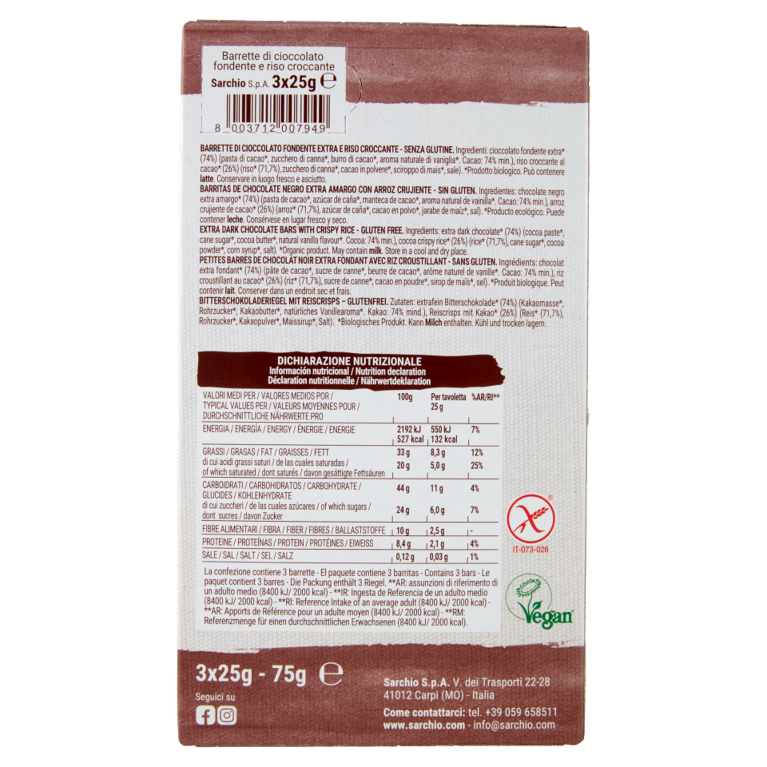 Cioccolato fondente extra con riso integrale - Senza glutine, specificamente formulato per persone intolleranti al glutine