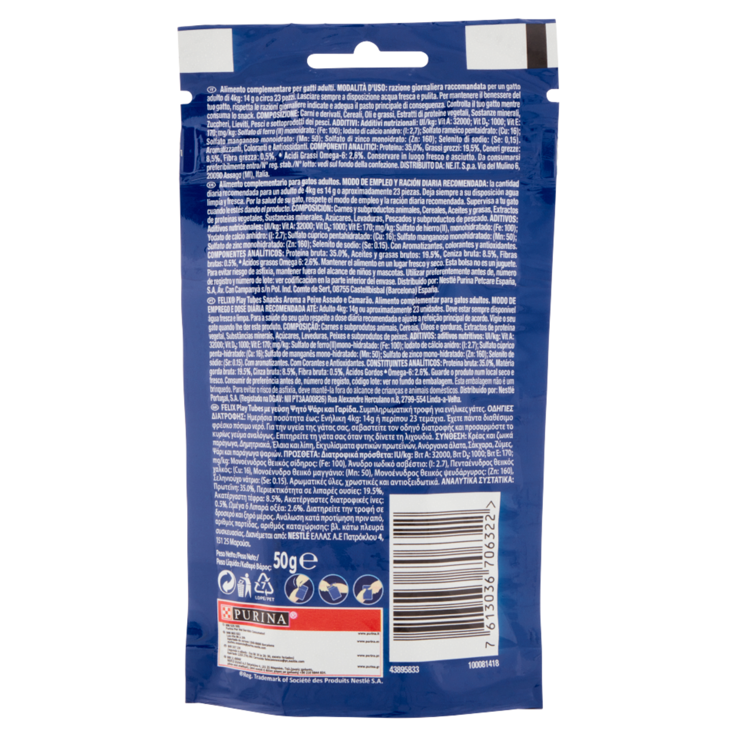 Modalità d'uso: razione giornaliera raccomandata per un gatto adulto di 4kg: 14 g o circa 23 pezzi. Lasciare sempre a disposizione acqua fresca e pulita. Per mantenere il benessere del tuo gatto, rispetta le razioni giornaliere indicate e adegua il pasto principale di conseguenza. Controlla il tuo gatto mentre consuma lo snack.