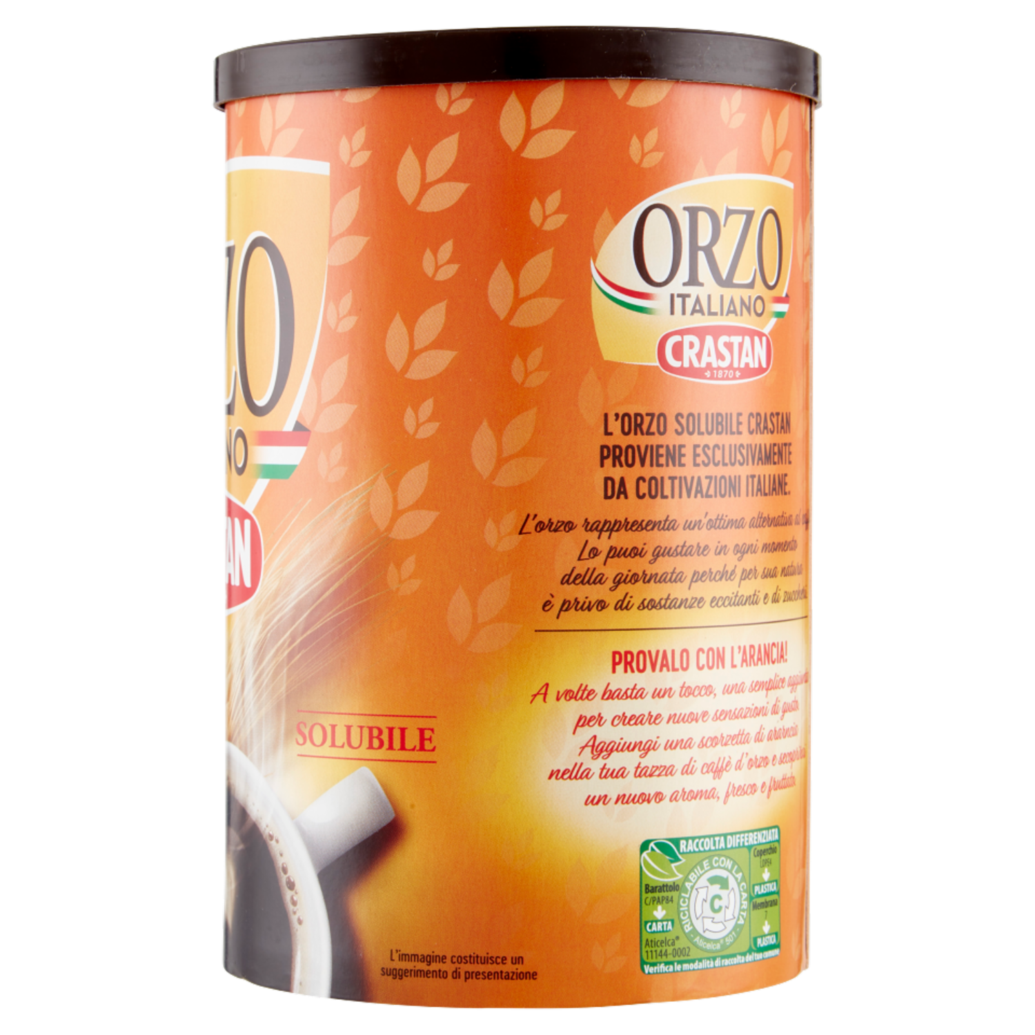 L'orzo solubile Crastan proviene esclusivamente da coltivazioni italiane. L'orzo rappresenta un'ottima alternativa al caffè. Lo puoi gustare in ogni momento della giornata perché per sua natura è privo di sostanze eccitanti e di zuccheri. Provalo con l'arancia! A volte basta un tocco, una semplice aggiunta per creare nuove sensazioni di gusto. Aggiungi una scorzetta di arancia nella tua tazza di caffè d'orzo e scoprirai un nuovo aroma, fresco e fruttato. Sciolto direttamente nel latte caldo o freddo è l'ideale per una colazione sana e nutriente.