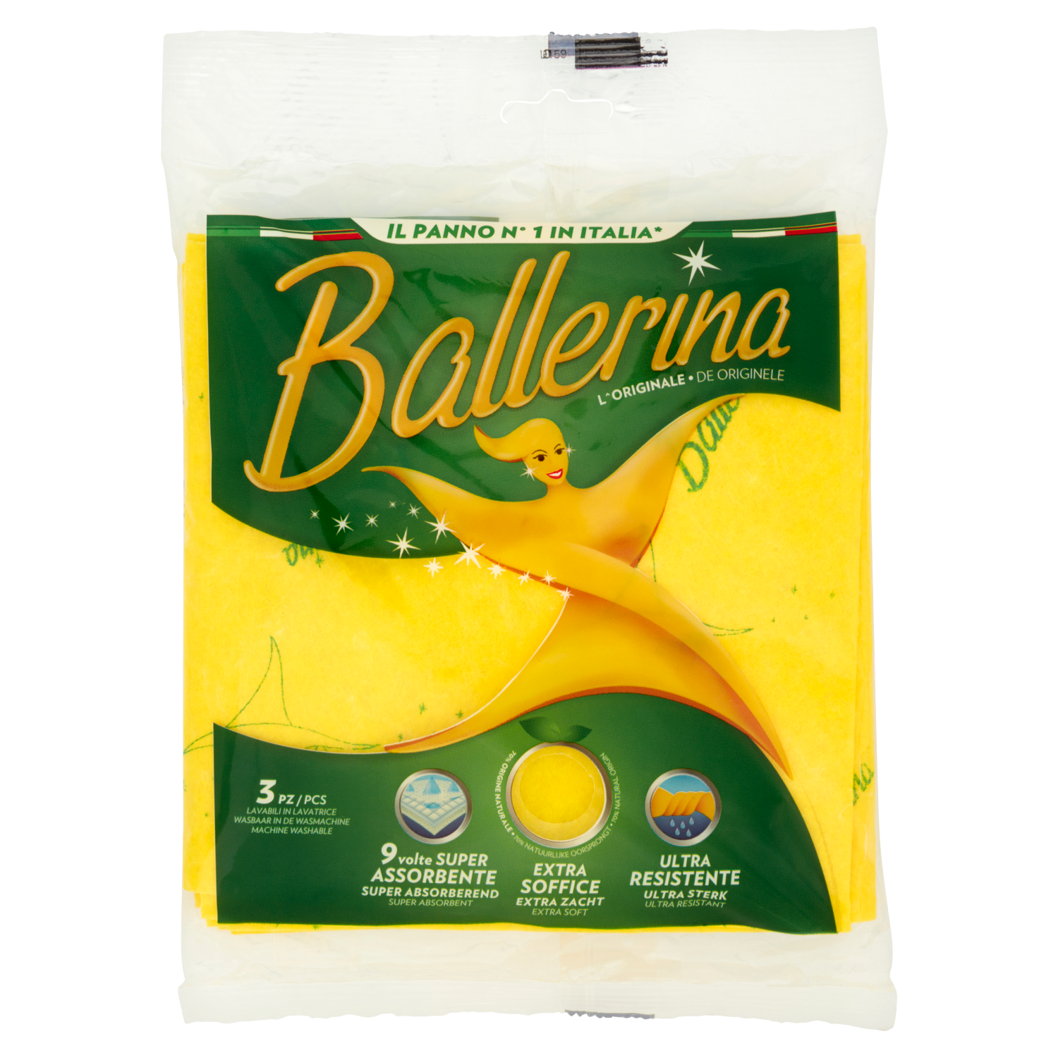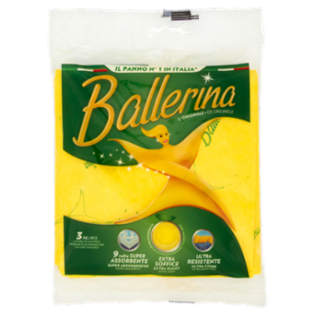 Ballerina è il panno ideale per le tue pulizie di casa: - Super Assorbente Assorbe fino a 9 volte il proprio peso - Extra Soffice Può essere utilizzato anche sulle superfici più delicate - Ultra Resistente Può essere utilizzato più e più volte