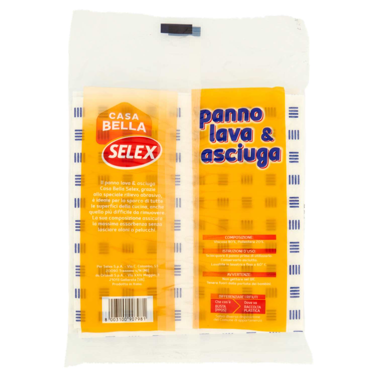 Il panno lava & asciuga Casa Bella Selex, grazie allo speciale rilievo abrasivo, è ideale per lo sporco di tutte le superficie della cucina, anche quello più difficile da rimuovere. La sua composizione assicura la massima assorbenza senza lasciare aloni o pelucchi.