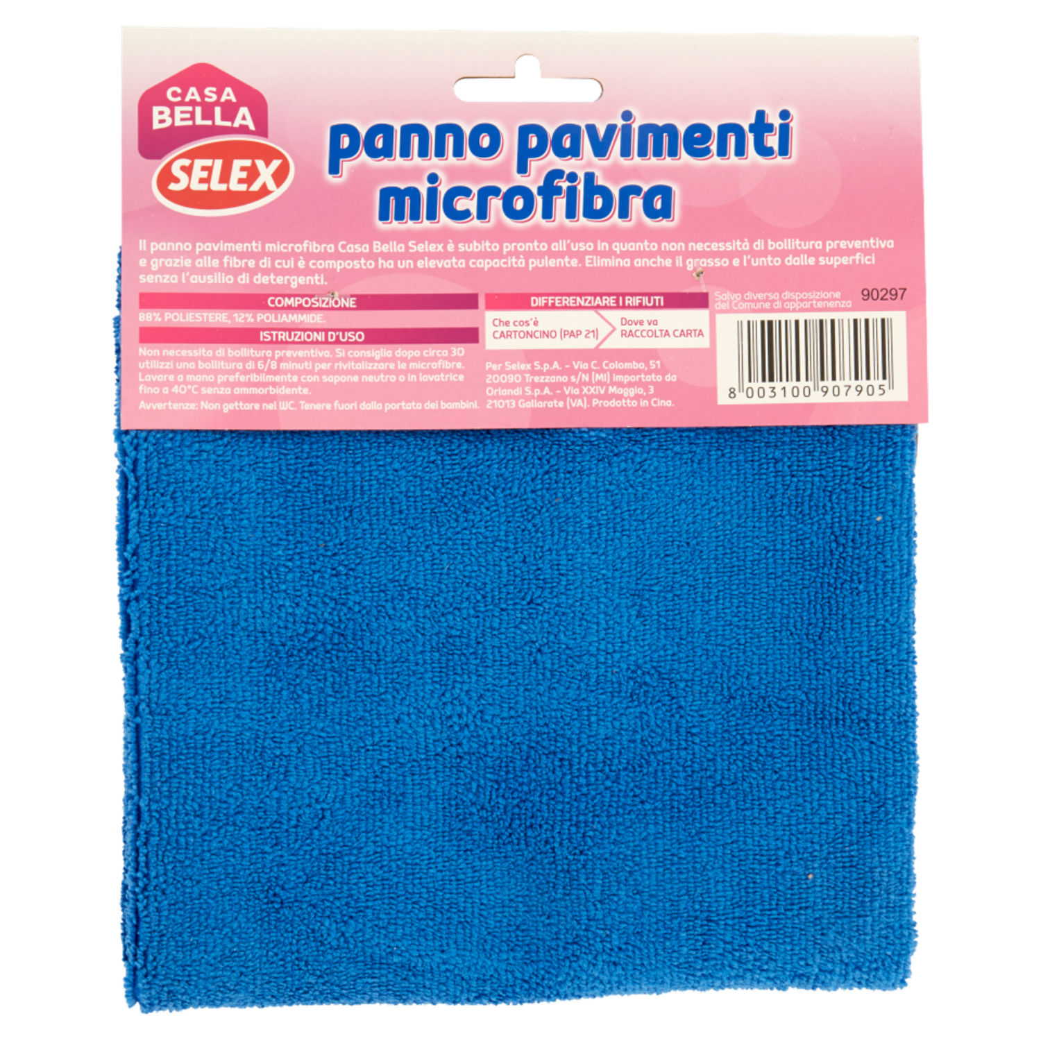 Il panno pavimenti microfibra Casa Bella Selex è subito pronto all'uso in quanto non necessità di bollitura preventiva e grazie alle fibre di cui è composto ha un elevata capacità pulente. Elimina anche il grasso e l'unto dalle superfici senza l'ausilio di detergenti.