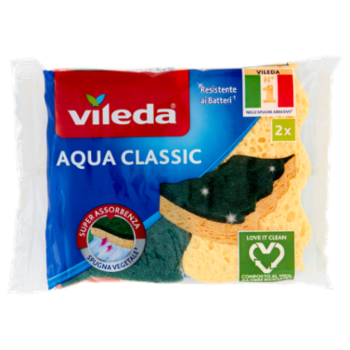 Spugna in cellulosa vegetale extra assorbente** + fibra abrasiva resistente.