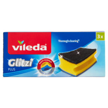 - Il lato nero abrasivo per rimuovere lo sporco più difficile. - Il panno blu per assorbire e pulire. - La spugna gialla salvaunghie per proteggere le tue mani.