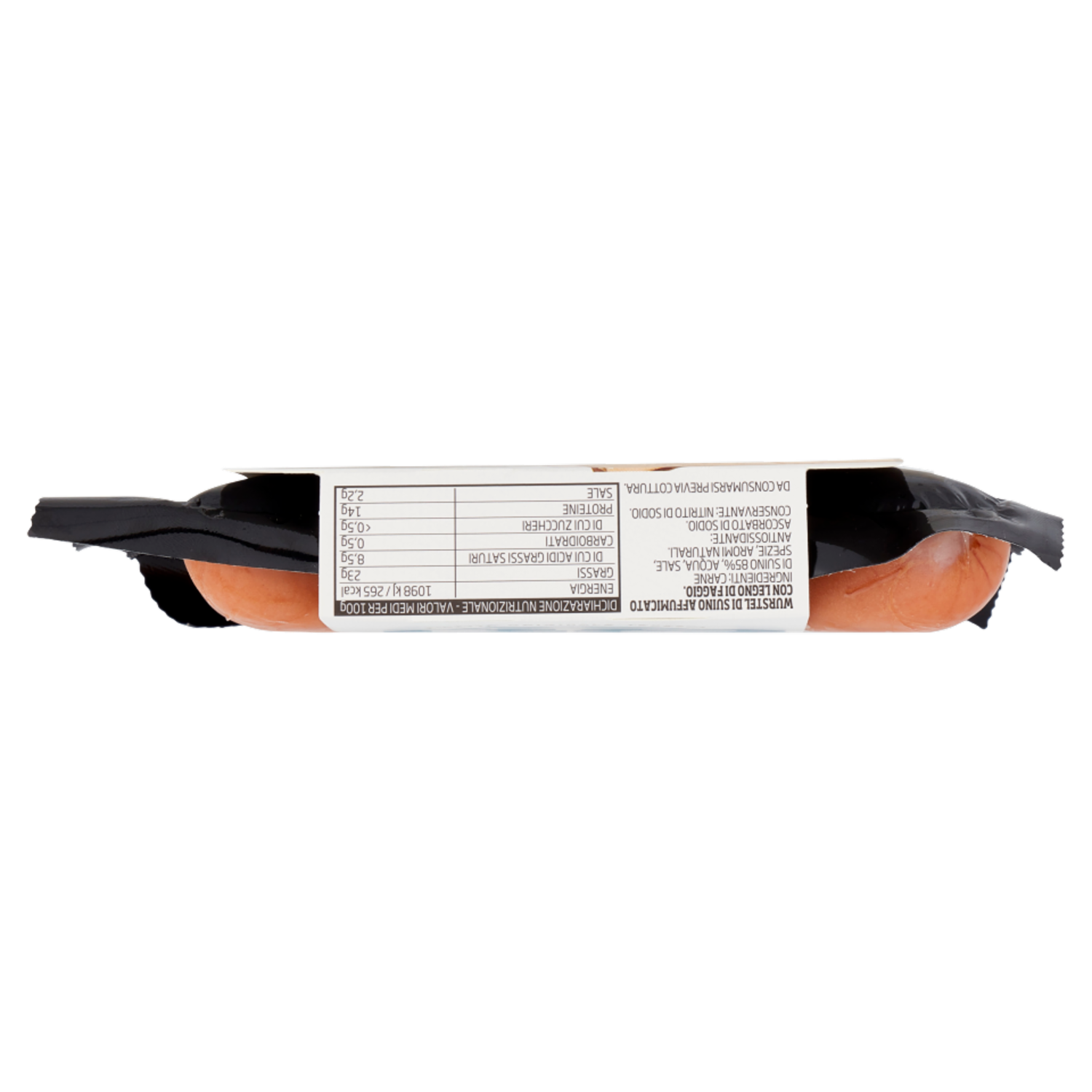 Wurstel di suino affumicato con legno di faggio Senza glutine. Senza lattosio