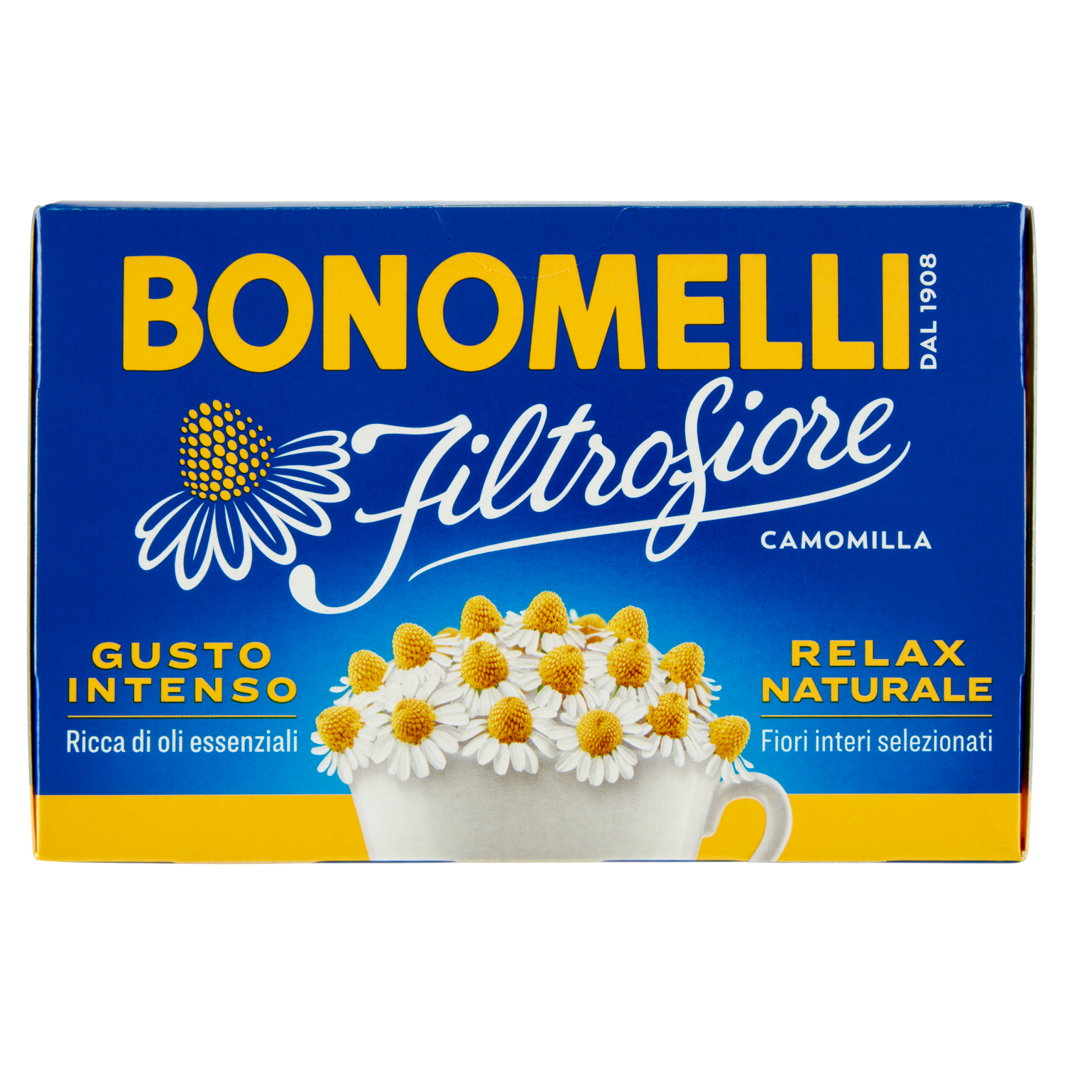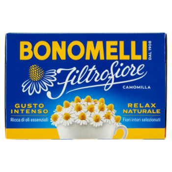 Filtrofiore Bonomelli contiene fiori interi di camomilla ricchi di oli essenziali e principi attivi, selezionati con cura per offrirti una bevanda dal profumo intenso e dal sapore inconfondibile. Nasce dalla selezione delle migliori coltivazioni di camomilla in Italia e nel mondo, dove l'esperienza e le competenze sviluppate in oltre 100 anni di storia permettono oggi a Bonomelli di seguire ogni fase della filiera produttiva dal campo alla tazza. Filtrofiore Bonomelli è ideale per piacevoli momenti di relax naturale: la camomilla contribuisce infatti al rilassamento e al benessere psicofisico.