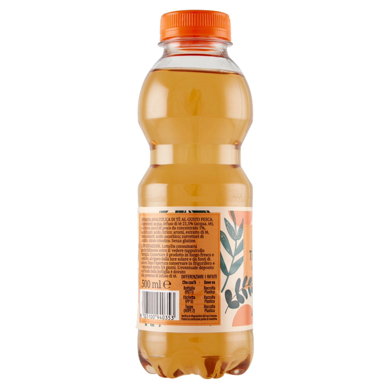 Conservazione. Conservare il prodotto in luogo fresco e asciutto, al riparo dalla luce solare e da fonti di calore. Dopo l'apertura conservare in frigorifero e consumare entro 3/4 giorni. L'eventuale deposito sul fondo della bottiglia è dovuto alla presenza di infuso di tè.