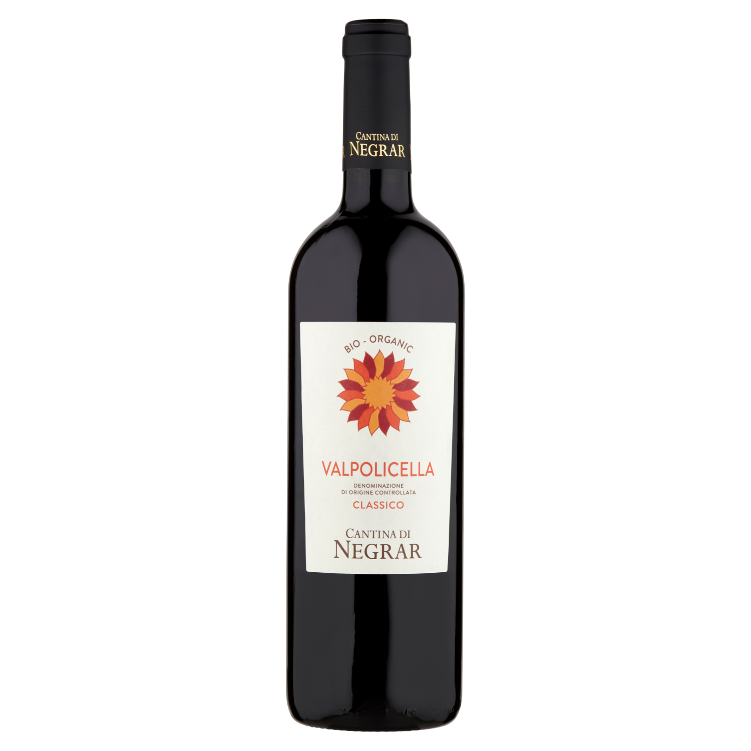 Valpolicella DOC Classico Bio, vino rosso biologico italiano. Ottenuto da uve biologiche. Colore: rosso, con sfumature violacee. Profumo: combinazioni di frutti rossi e leggermente speziato. Sapore: secco e bilanciato nel tannino. Valpolicella Denominazione di Origine Controllata