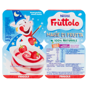 Preparazione alla fragola 20% (*purea di fragola da concentrato 7%, *zucchero, *fibre di limone, *concentrato di carota, *aromi naturali, *succo concentrato di limone, fosfati di calcio, *amido di mais, vitamina D)