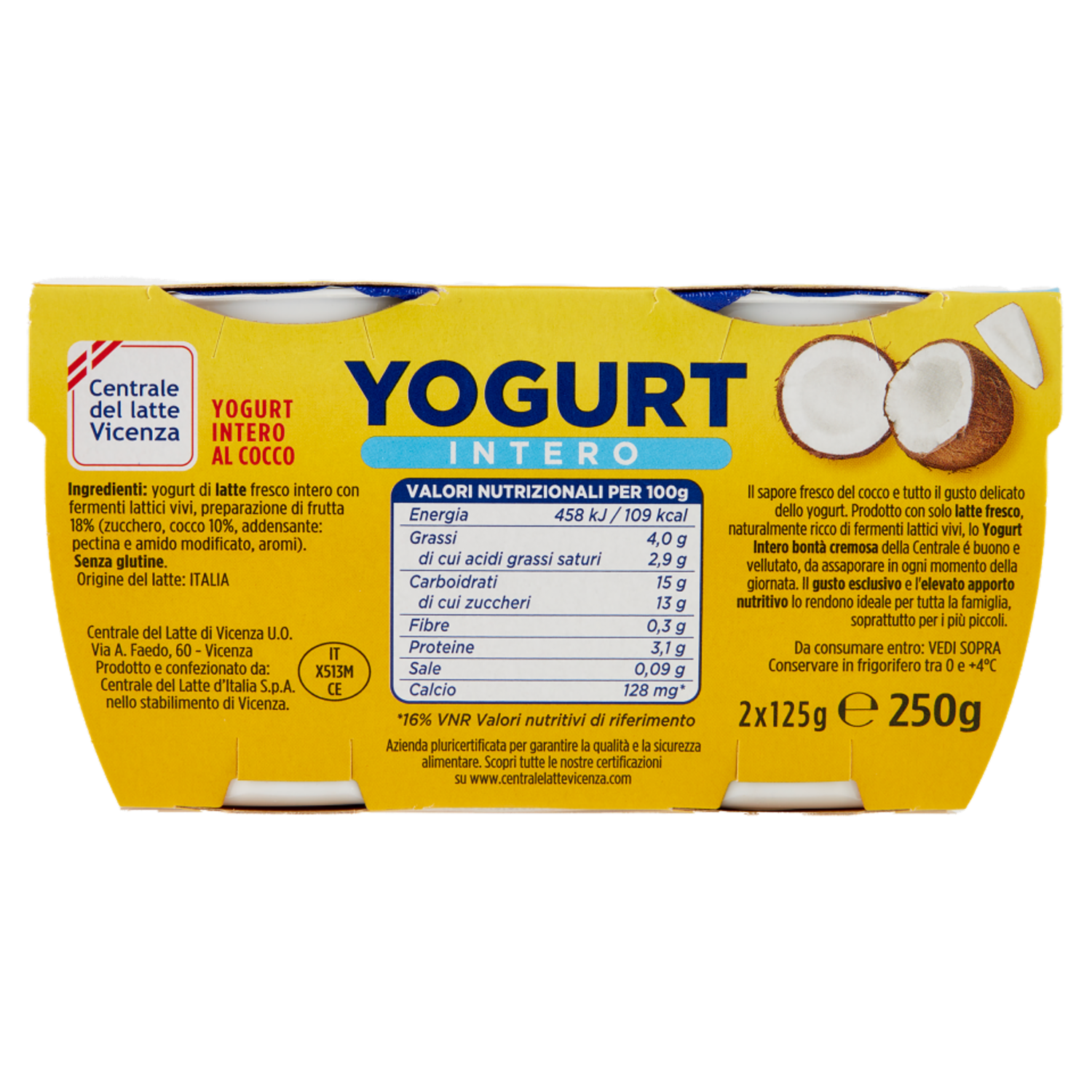 Il sapore fresco del cocco e tutto il gusto delicato dello yogurt. Prodotto con solo latte fresco, naturalmente ricco di fermenti lattici vivi, lo Yogurt Intero bontà cremosa della Centrale è buono e vellutato, da assaporare in ogni momento della giornata. Il gusto esclusivo e l'elevato apporto nutritivo lo rendono ideale per tutta la famiglia, soprattutto per i più piccoli.