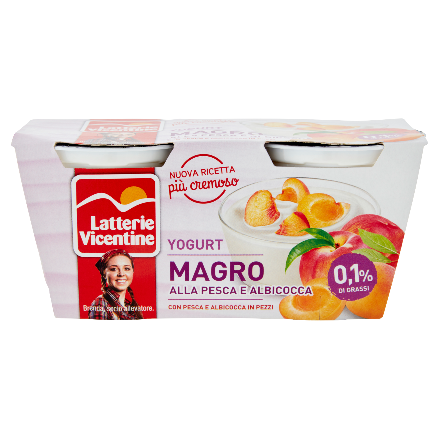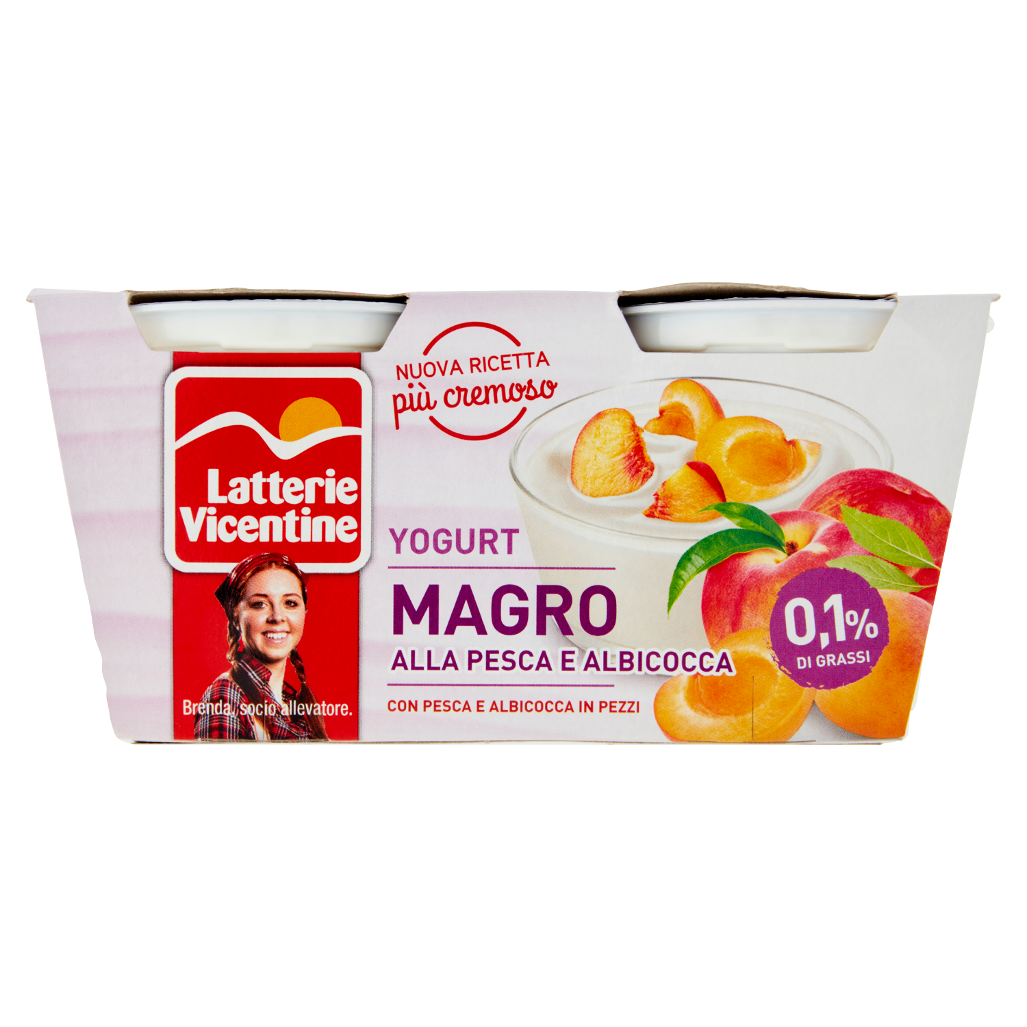 Preparazione di frutta 10% (pesca e albicocca 8% sul totale, fibra alimentare: oligofruttosio 0,9% sul totale, zucchero, addensanti: amido modificato di mais e pectina, aromi, correttore di acidità: acido citrico)