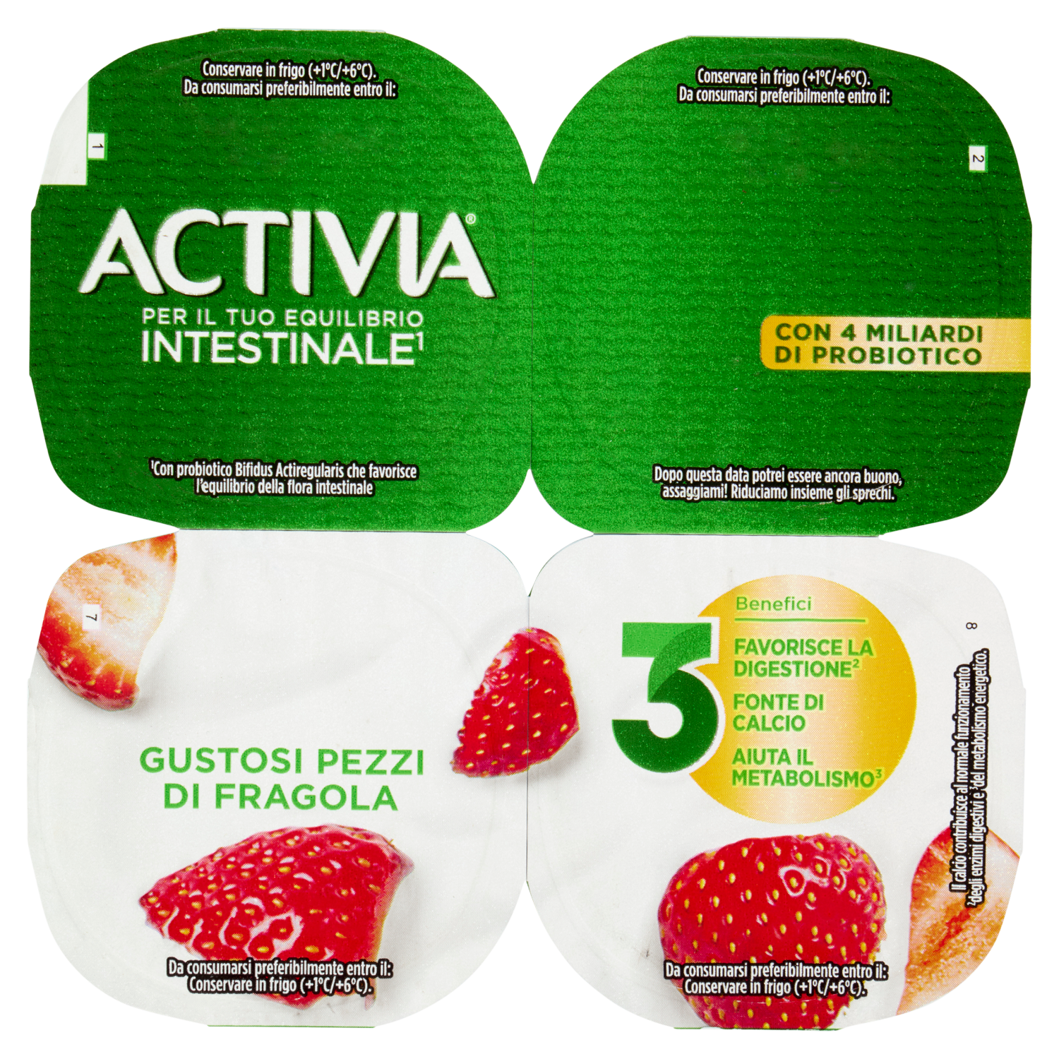 Con probiotico Bifidus Actiregularis che favorisce l'equilibrio della flora intestinale