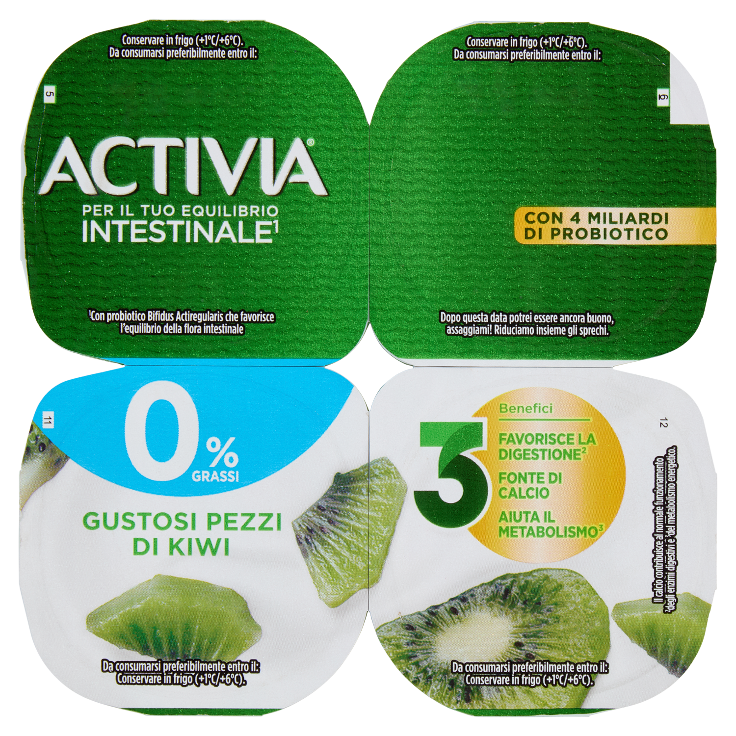 Activia contiene 4 miliardi di probiotico bifidus che favorisce l'equilibrio della flora intestinale. 4 miliardi di probiotico bifidus equilibrio flora intestinale
