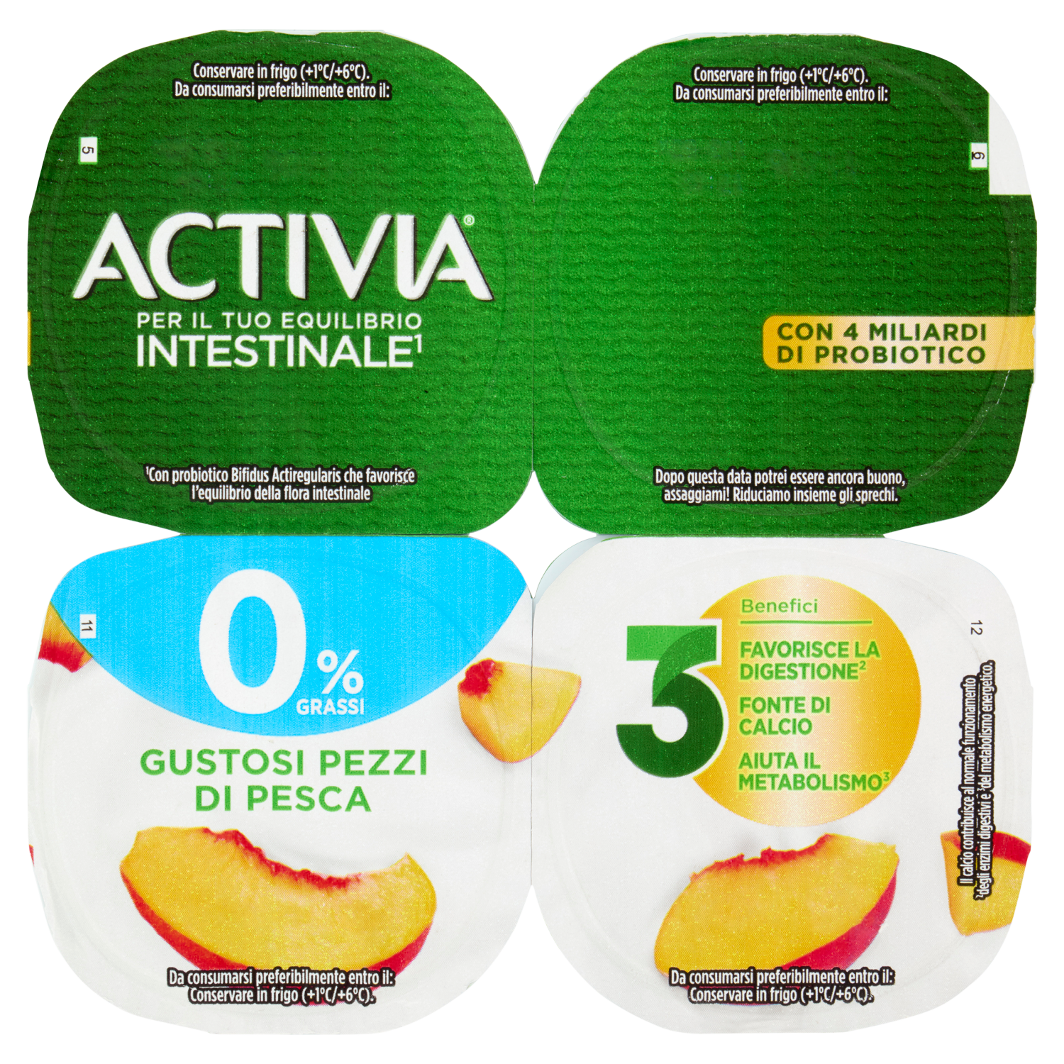 Activia 0% Grassi Pesca in pezzi 4 x 125 g