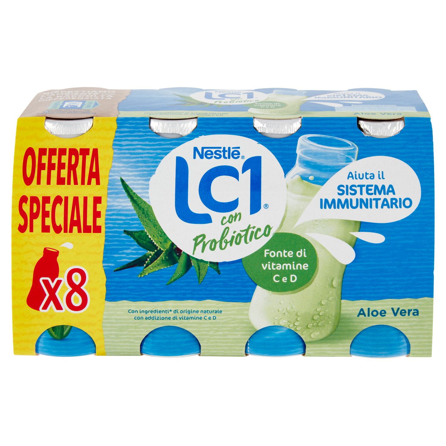 Aiuta il Sistema Immunitario Cosa c'è in ogni bottiglietta di LC1? Ogni bottiglietta contiene un miliardo di Lactobacillus Johnsonii La1, l'esclusivo fermento probiotico isolato per la prima volta da Nestlé nel 1995 e da sempre utilizzato in LC1 perché favorisce l'equilibrio della flora intestinale. LC1 è inoltre arricchito con vitamine C e D che contribuiscono alla normale funzione del sistema immunitario. Bevine uno al giorno per sentirti al meglio! Non dimenticare di seguire un'alimentazione varia ed equilibrata, scegli uno stile di vita sano, fai movimento tutti i giorni e bevi ogni giorno almeno 1,5 lt di acqua. - Offerta speciale - x8 bottigliette - Aiuta il Sistema Immunitario - Fonte di vitamine C e D - Con ingredienti* di Origine Naturale con addizione di vitamine C e D